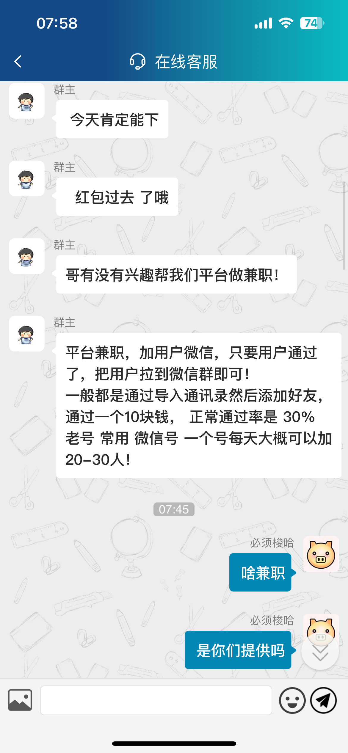 这个第二天早上才拉群,一般结账的时候上线就装死了