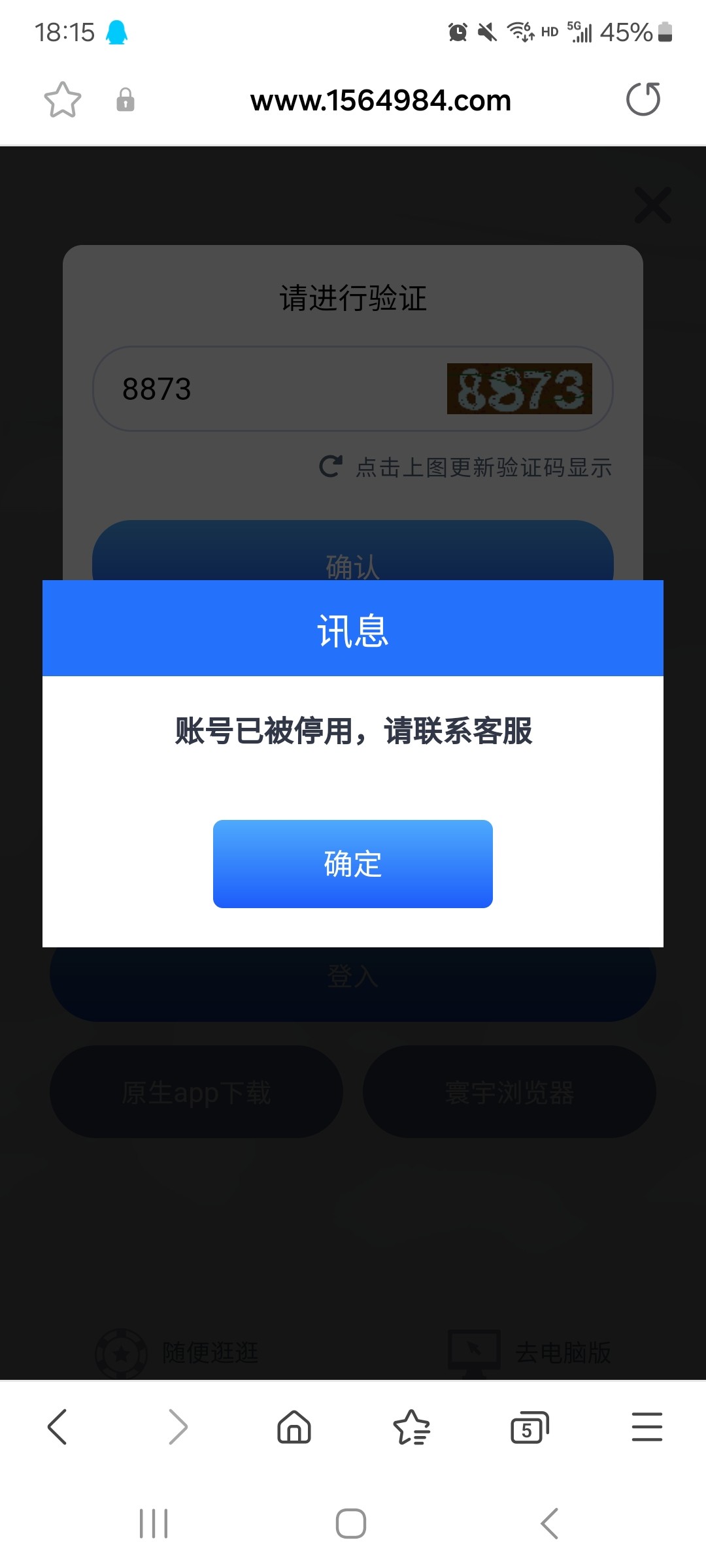 我打麻将胡了4块一拉爆了300块钱刚从免费旋转里面出来直接显示用户已经被登出,我再去重新登陆就是账号已停用