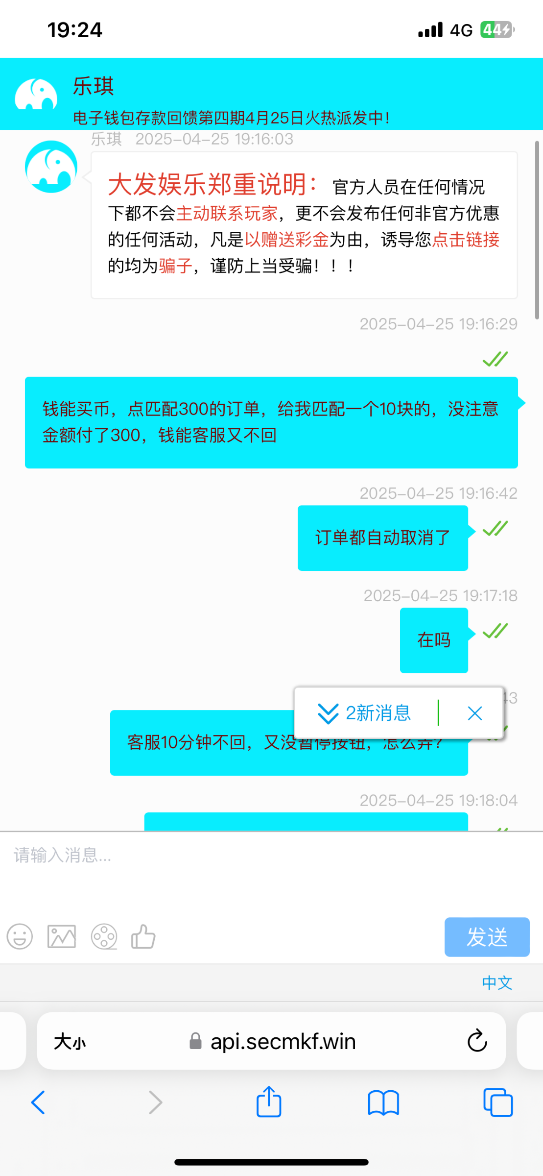 玩大发989,钱能买币付错了钱,钱能客服10几分钟不回信息,订单又没有暂停按钮,等客服回复订单都自动取消了,垃圾钱包