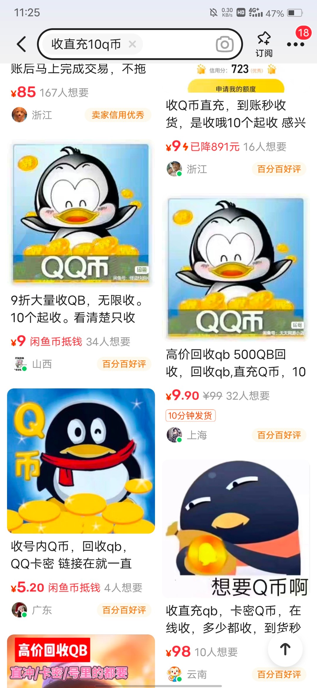 闲鱼上帮别人代充是10Q币可以卖9-10左右