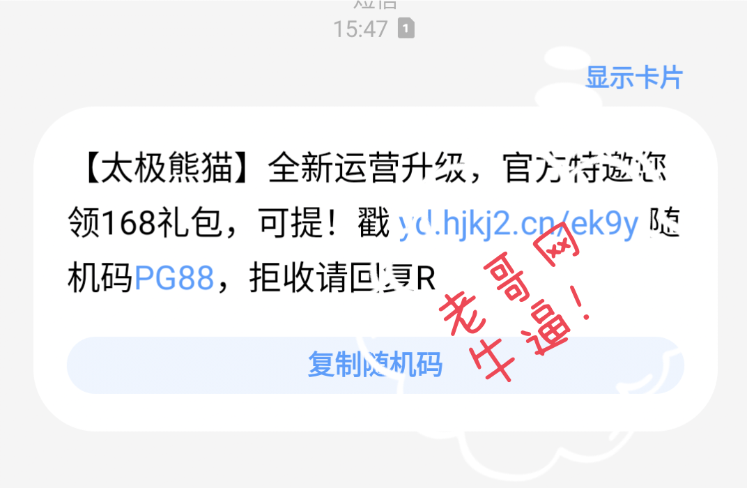 短信非要个老哥网牛 怕我们不知道?