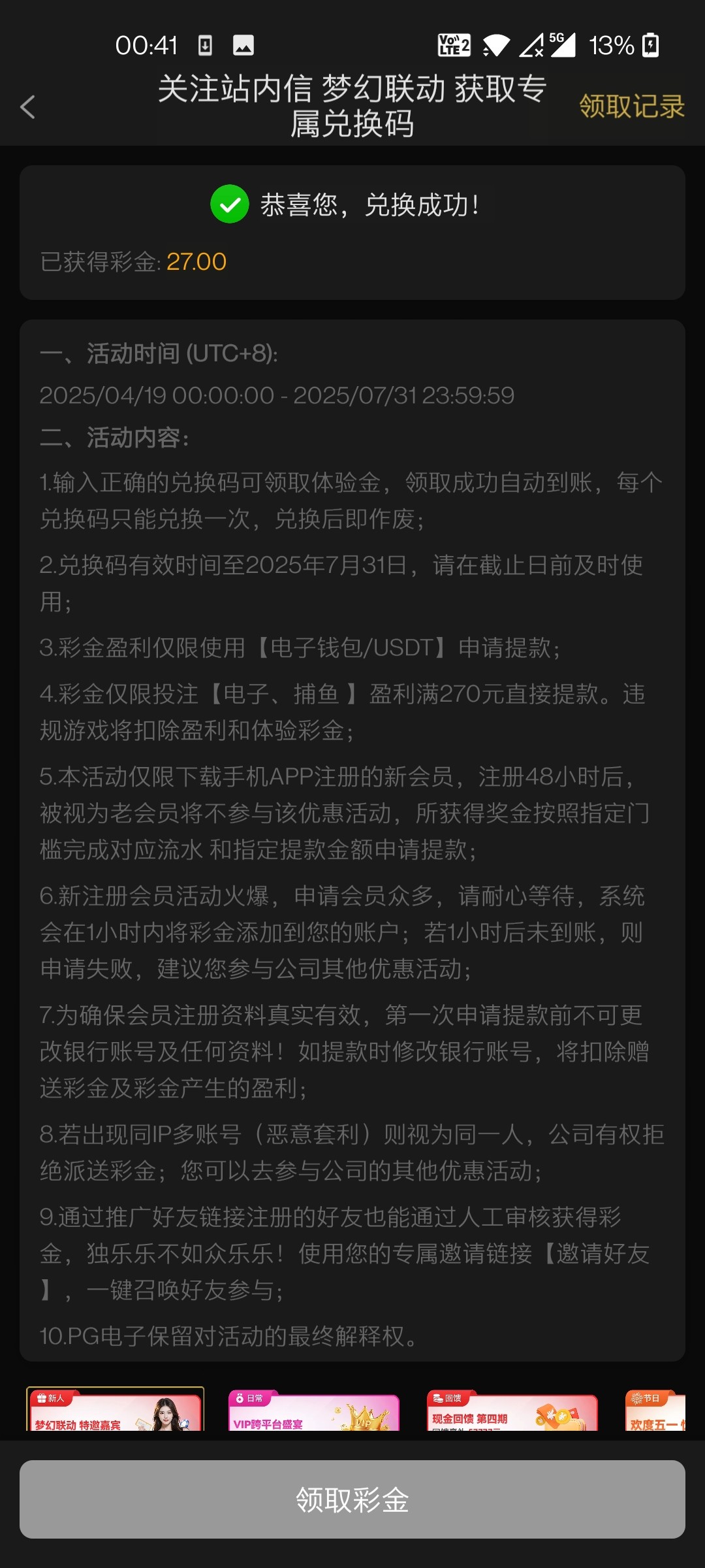 以前有玩过澳门2015的登录看站内信,里面有个优惠码,然后注册677兑换即可,白嫖勿充值.
