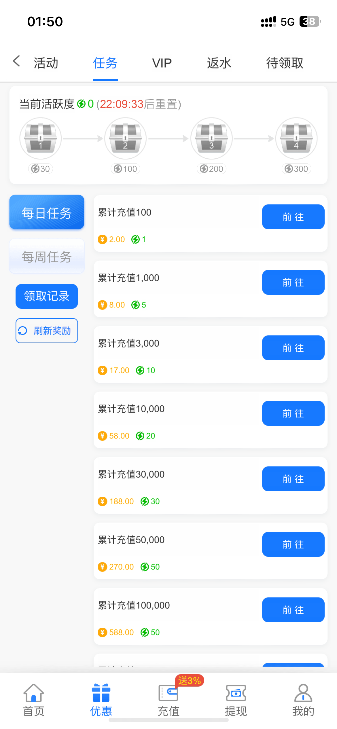 活动改了,充值两次充值100以上