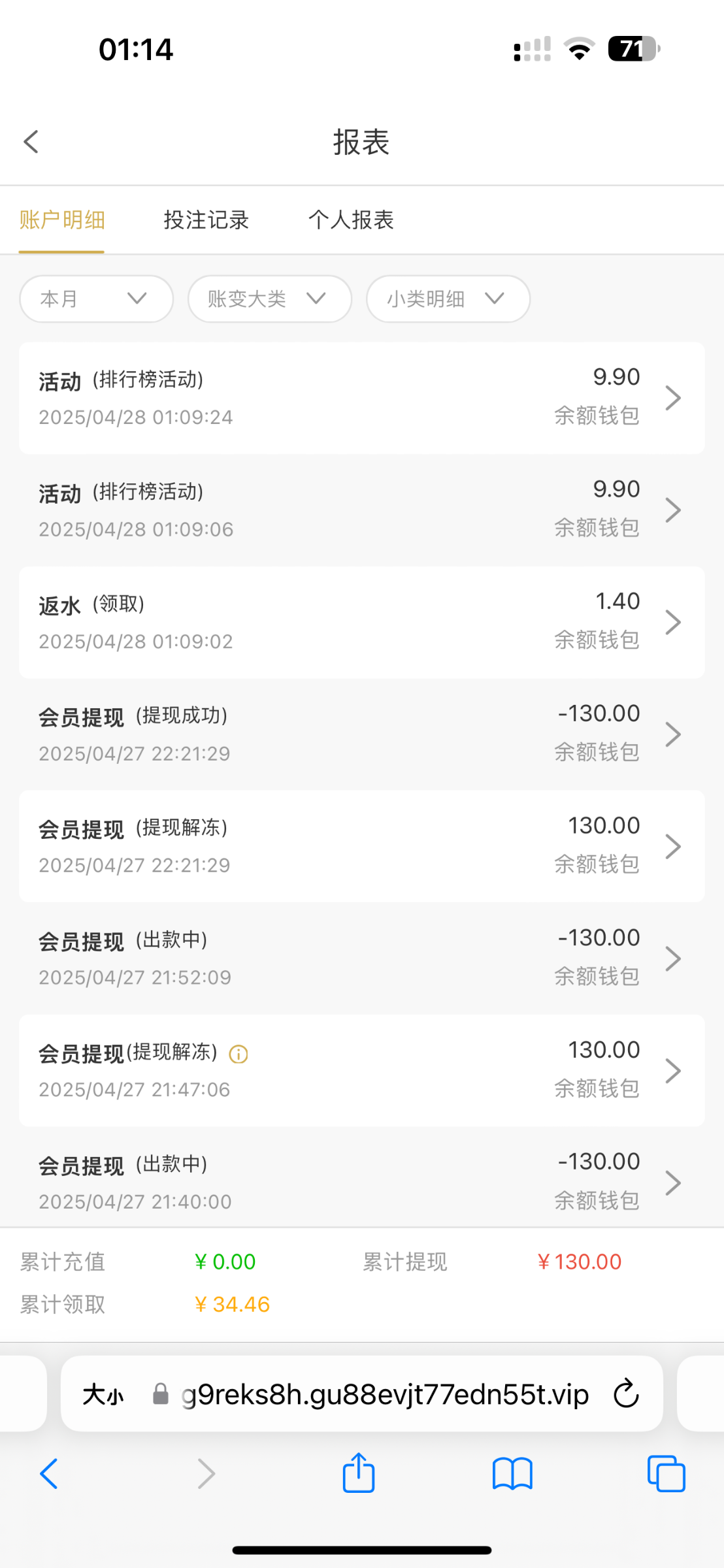 刚才不是有一个老哥发葡京AAA自助特邀彩金的吗 领取过特邀彩金的 登陆回去看一下有没有 我就打了176流水还提了130 给了两个9.9 网址:55791.org