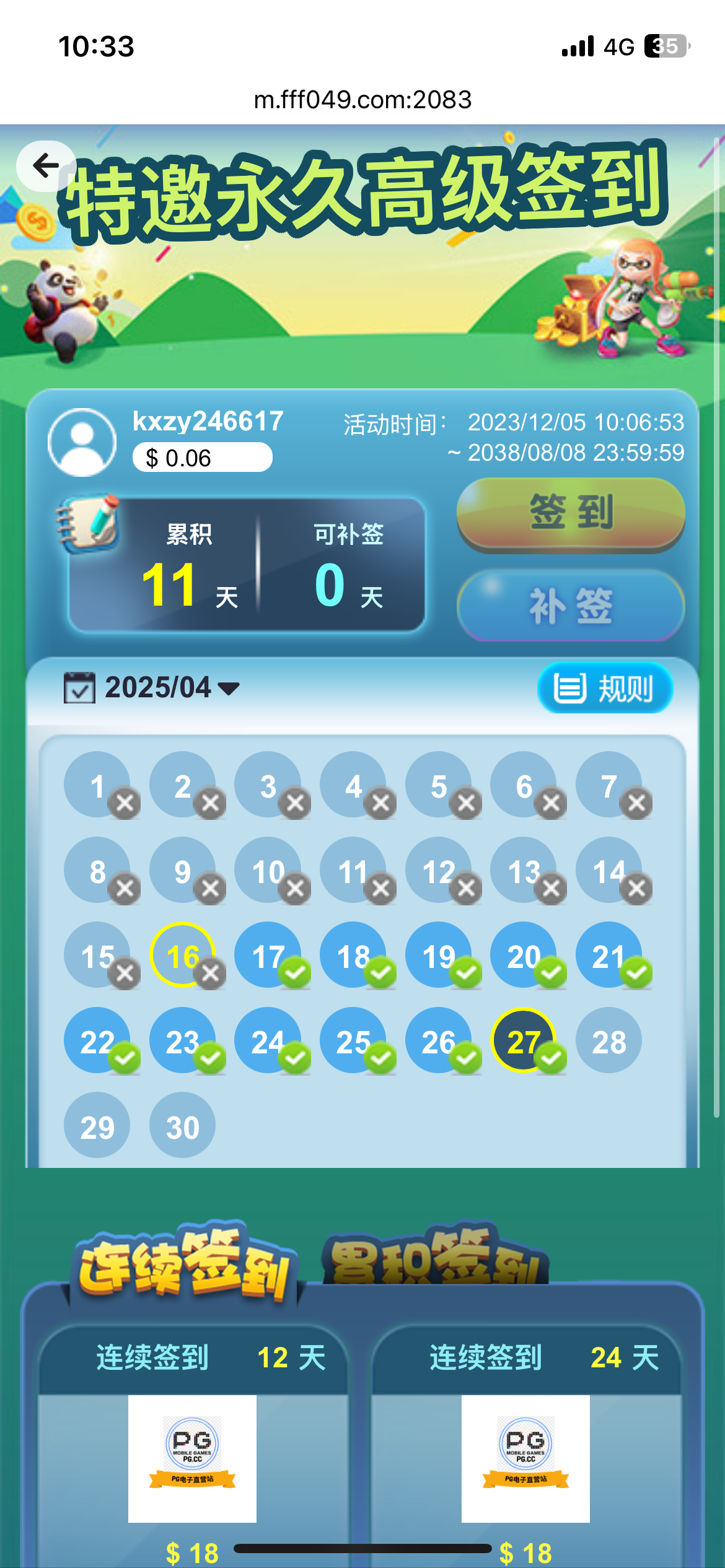 假永久,半个月不充值保级就掉签到等级。