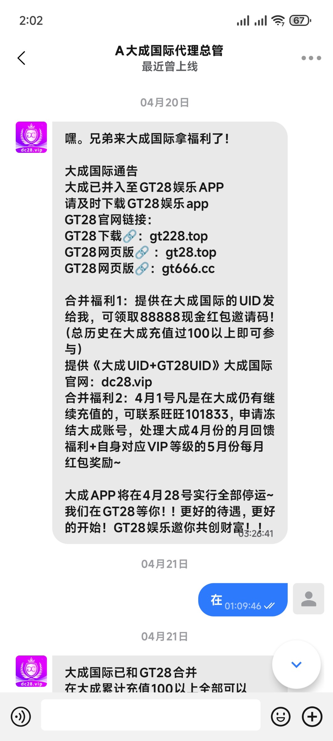 以前大成28充值过100的可以联系旺旺101833拿gt28的红包码,我领了30多没打出来