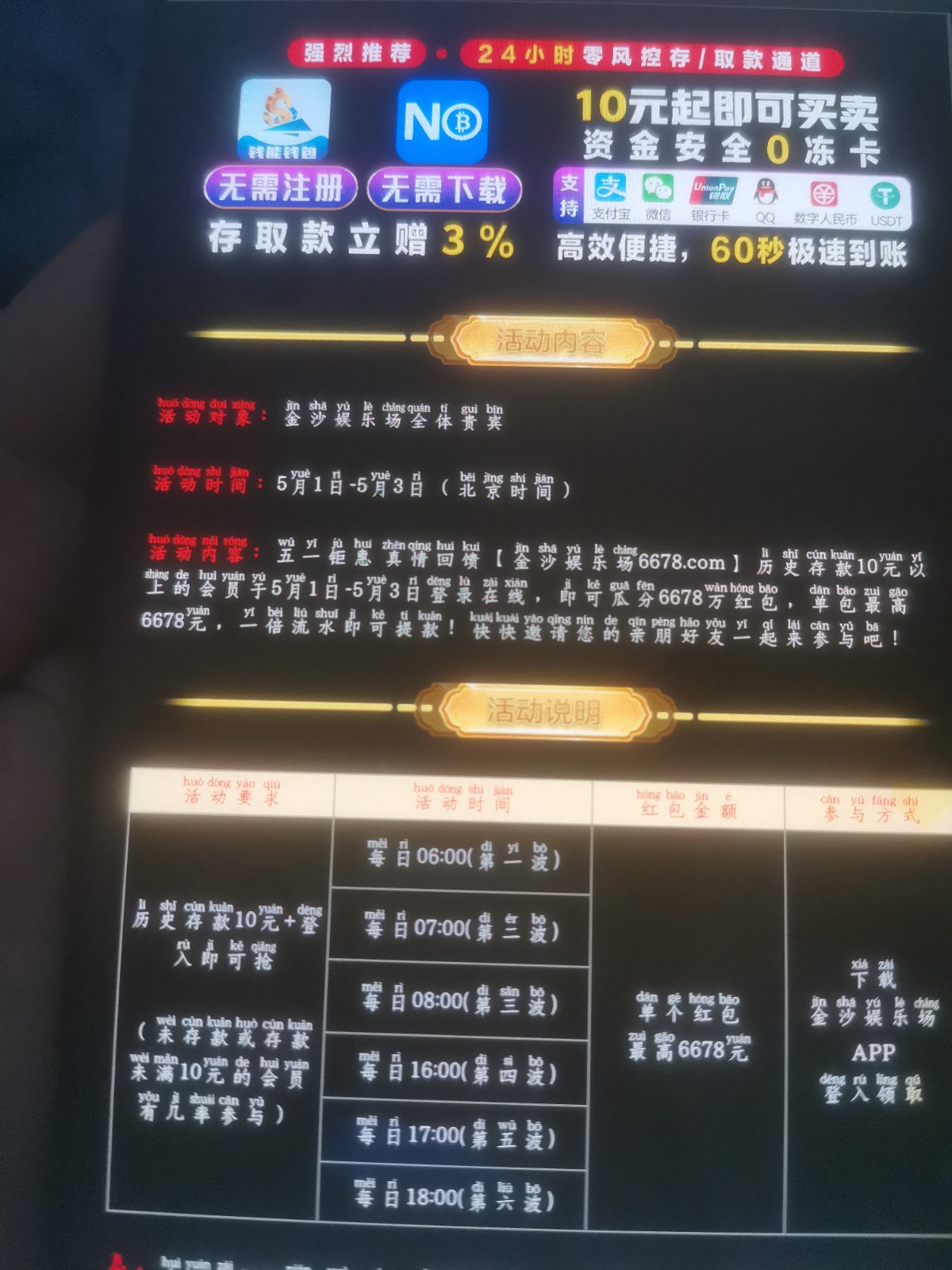 一共九个平台大致活动分为登入抢红包,历史存款礼金,历史单笔礼金,会员等级礼金。今年没有存款过的用户无视即可