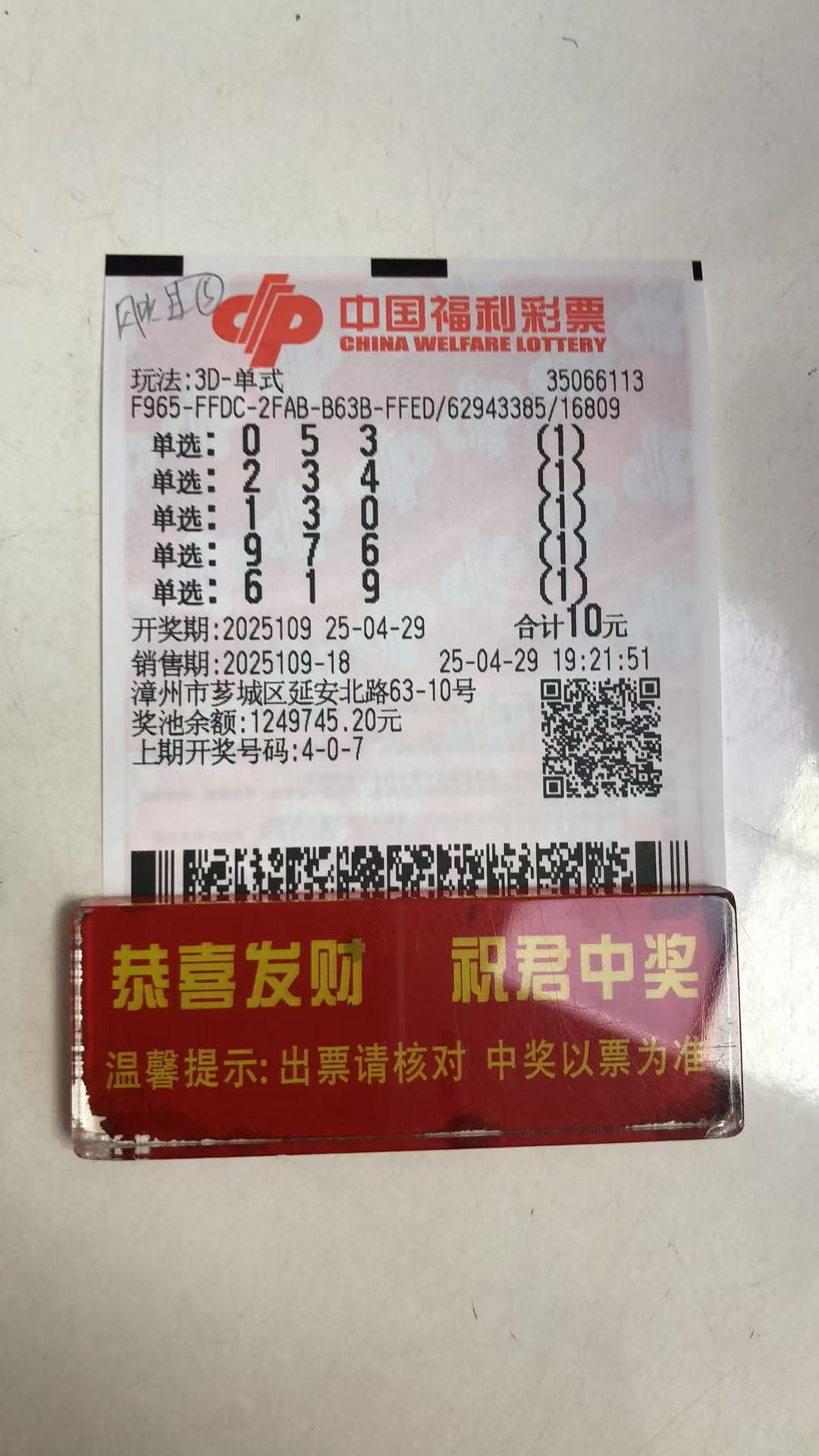 3D 买了十多天一次没中过好难啊今天的3D号码开到排3去了难受