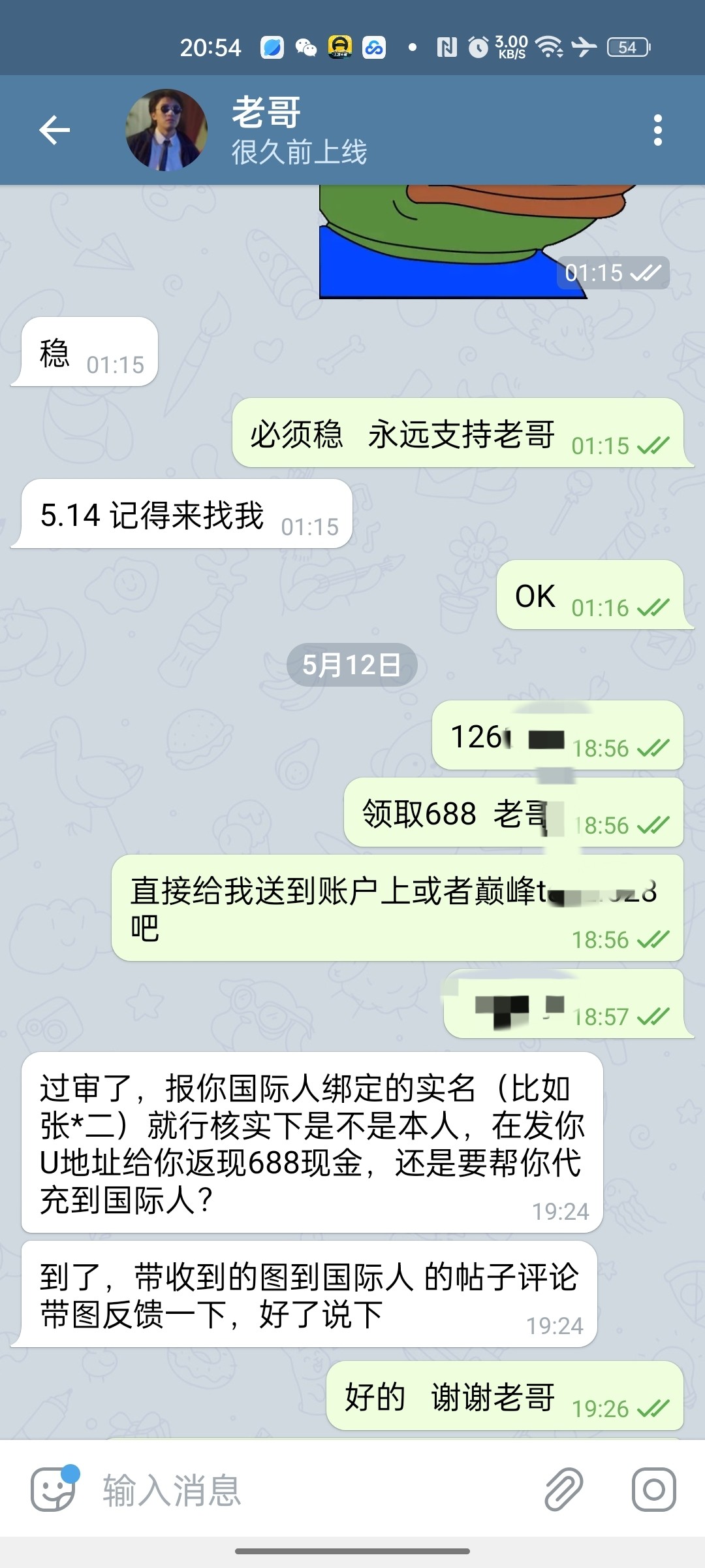 收到688了 感谢老哥 认准老哥网 老哥靠谱!