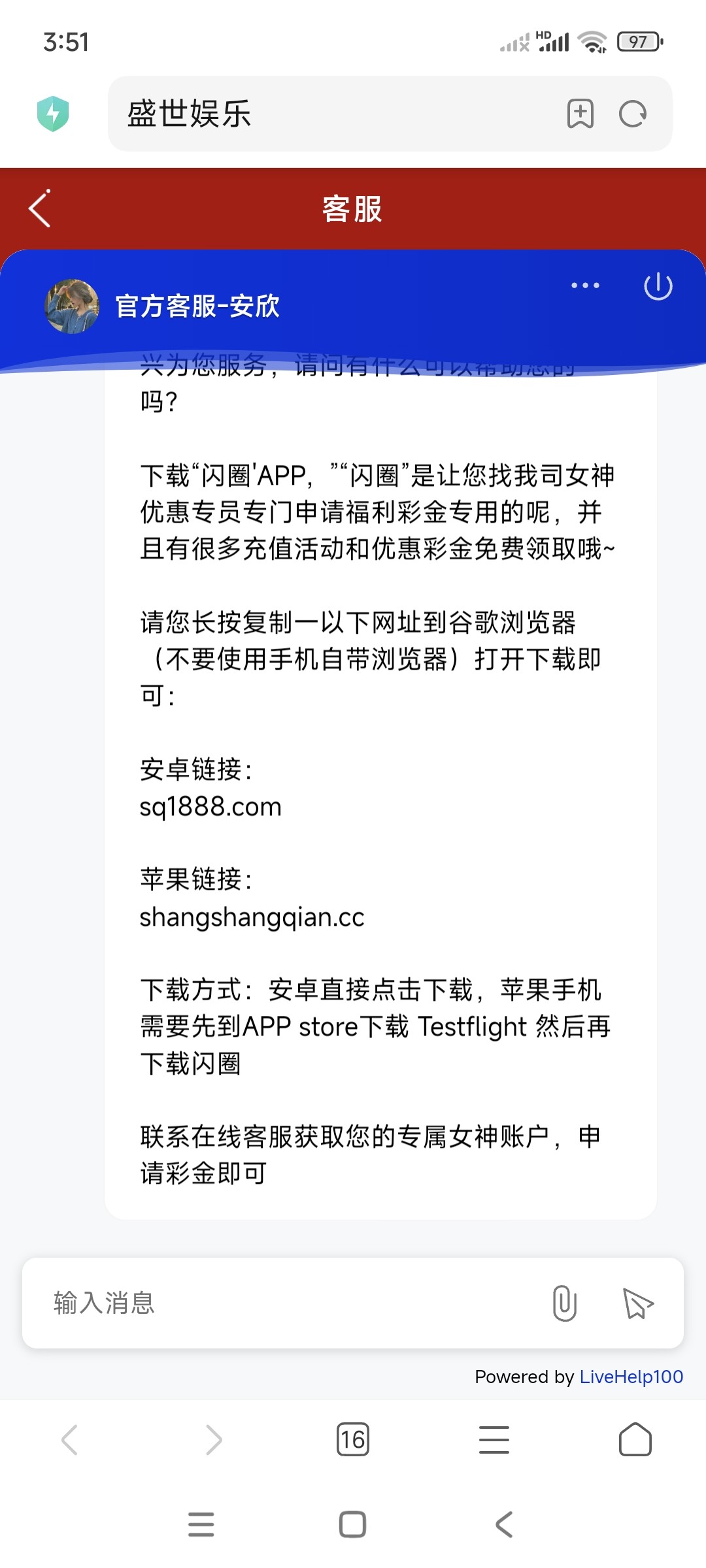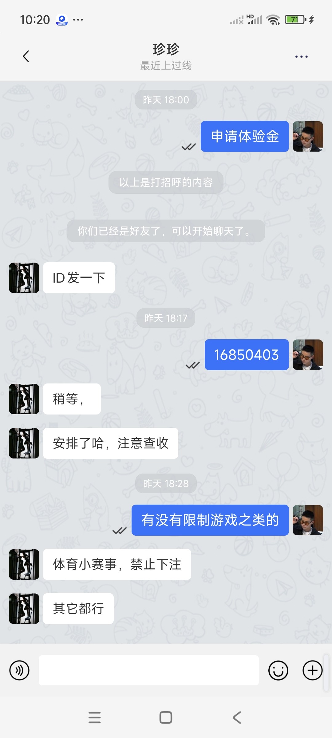 我4月25号就接到个叫盛世娱乐的,她是加我微信,TMD后面一直没看到加我,说送我288
