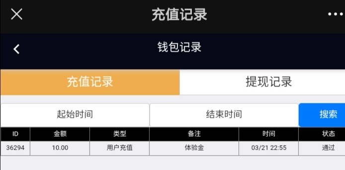 微信扫码在充值里面选择体验金提交10