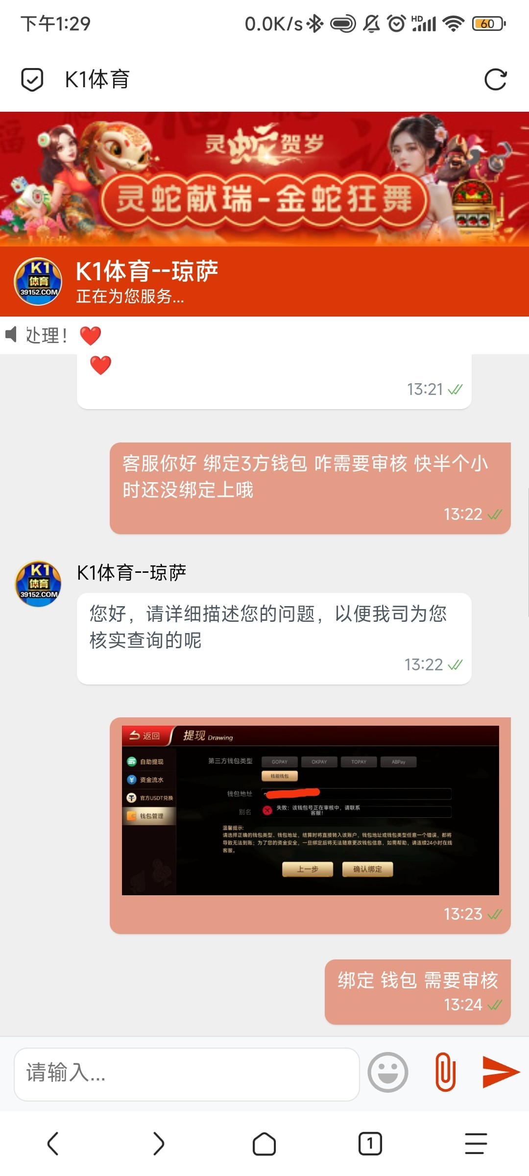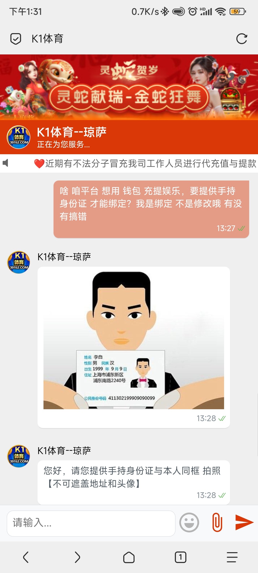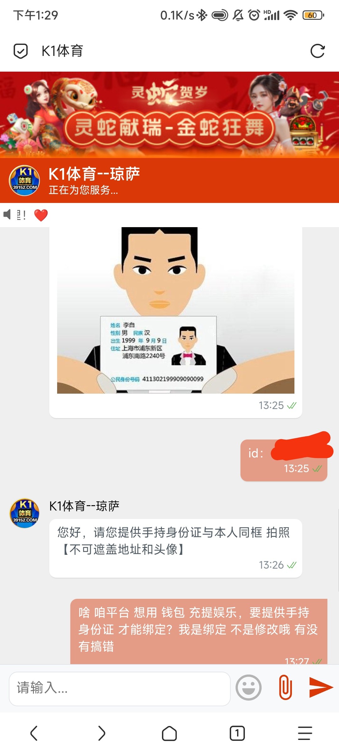 绑定电子钱包 需要手持身份证? 乐子平台,天庭绑定了没有动静,k1也绑定了,等了半个小时,两个都没有绑定上,去k1客服问了下给的回复跟人机一样,客服也不说人话 像极了黑台 只用快捷文本回复