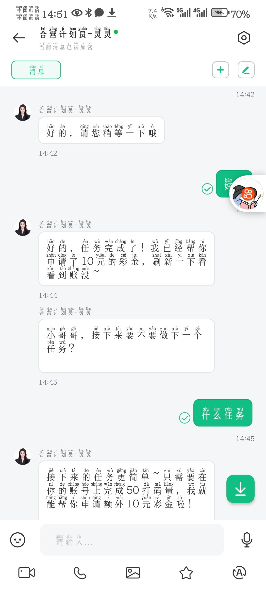 注册下载app联系客服申请特邀彩金是特邀会让你下载回音鸟申请,下载app送8在群里说十句话送10完成五十打码送10,我没打出来,出款自测www.ks.cc