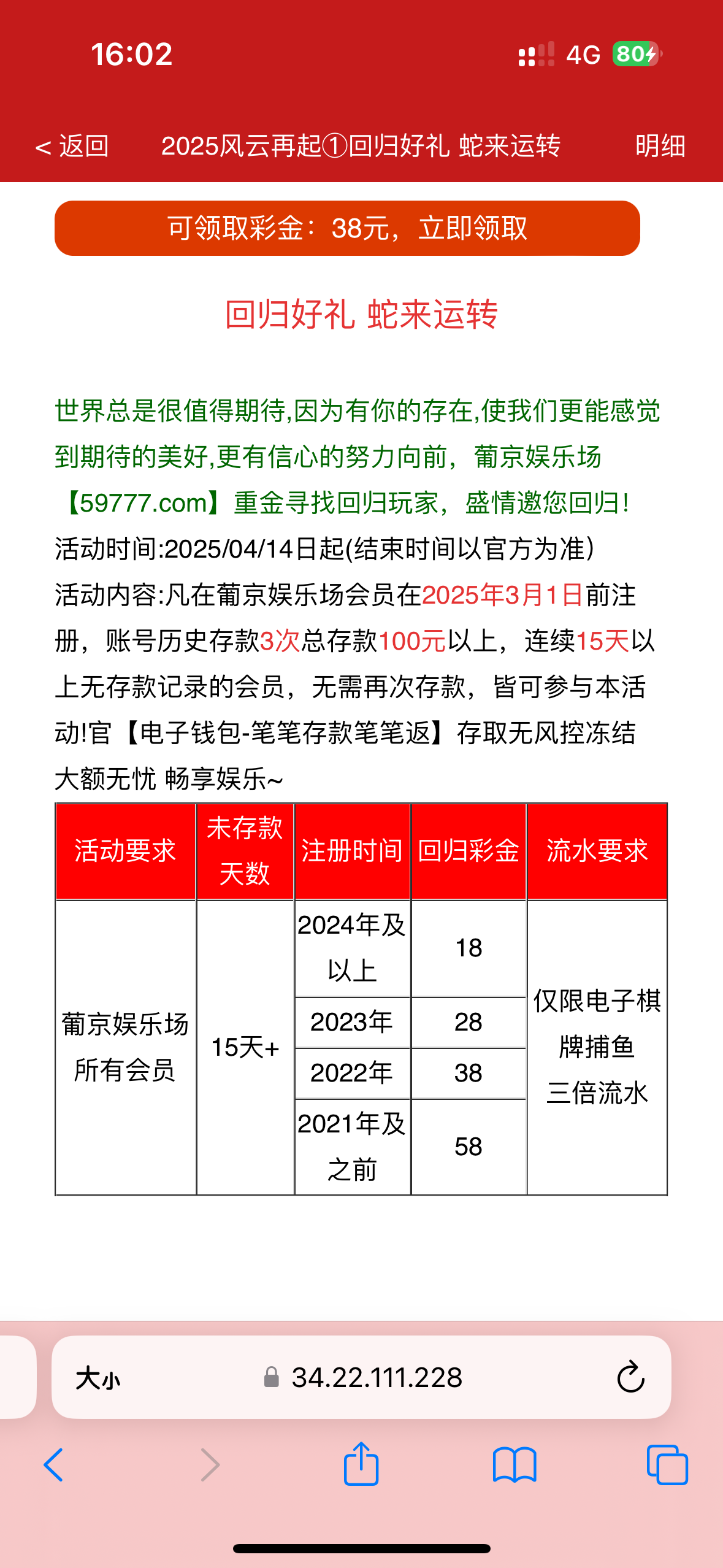今天无意间看到的,本人送了38 b台子一点水没有打死了,白嫖即可不送的不要中出我 链接 59777.com