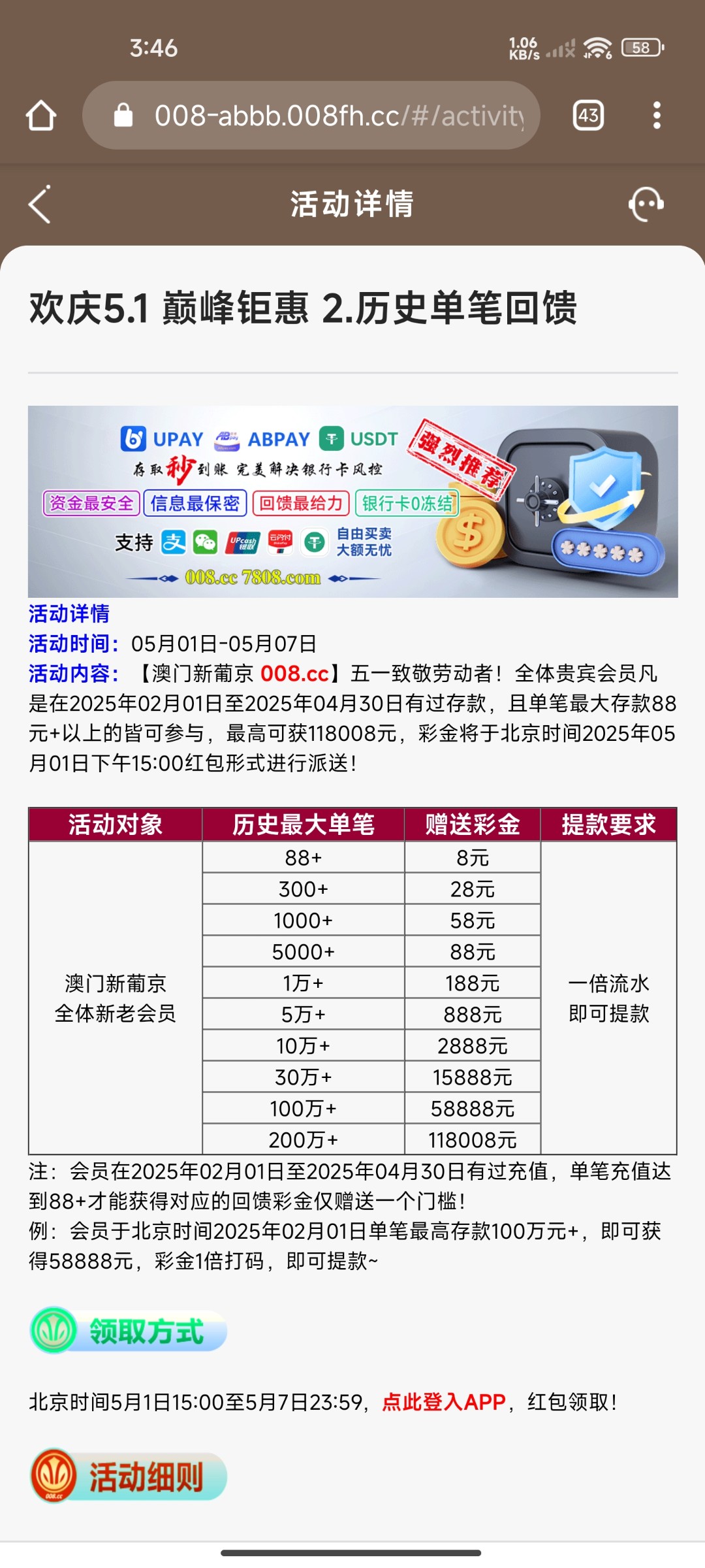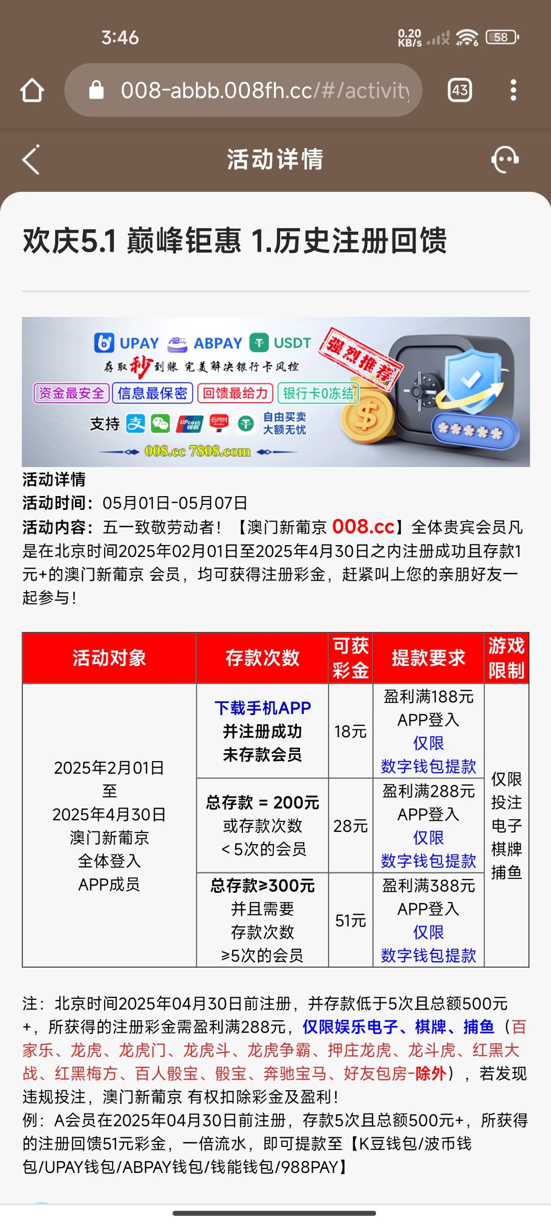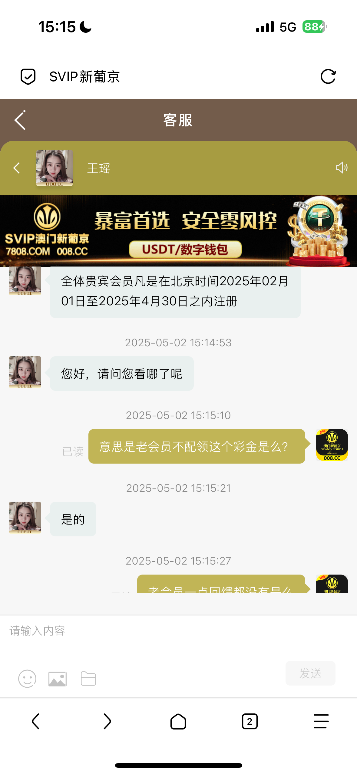 这就是个死妈台啊,活动全部限制今年注册的才能领,没有一个老会员的回馈,妈的都v15了什么彩金都没送,客服还贼你妈逼嚣张