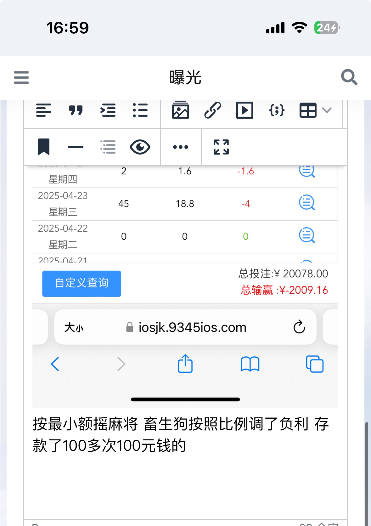 以前注册彩金赢过100元钱 后面一存钱就上头8毛麻将吃了我一万一倍 遥控死妈畜生狗 存款100多次100元一次300没上来过还是8毛摇 全部按照流水设定了负利 打流水越多输得越多 遥控黑台