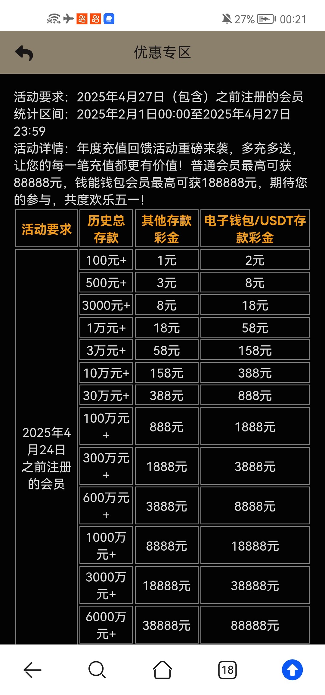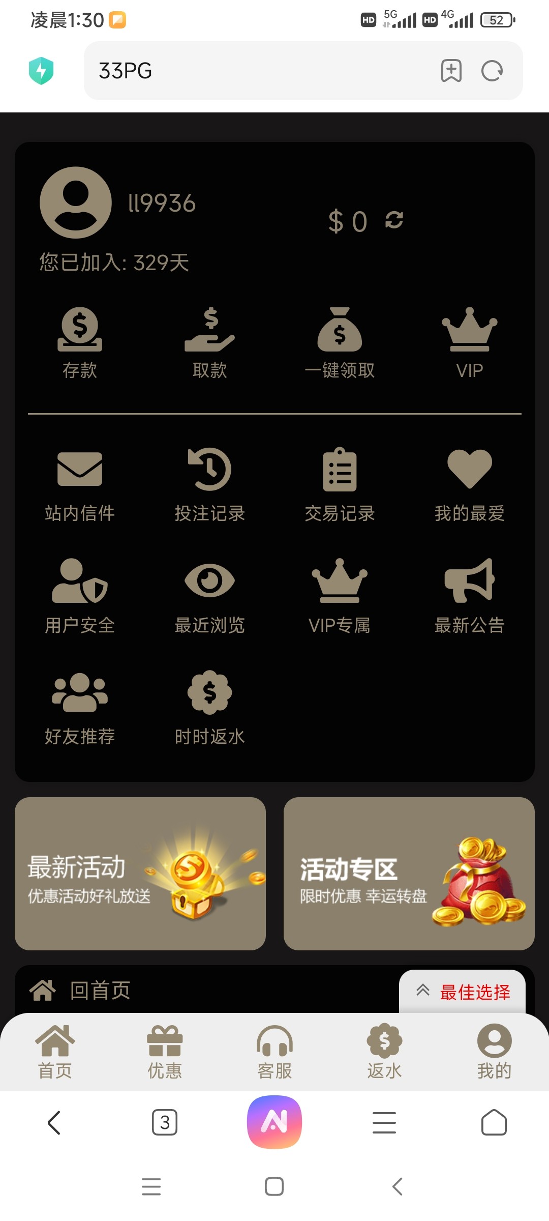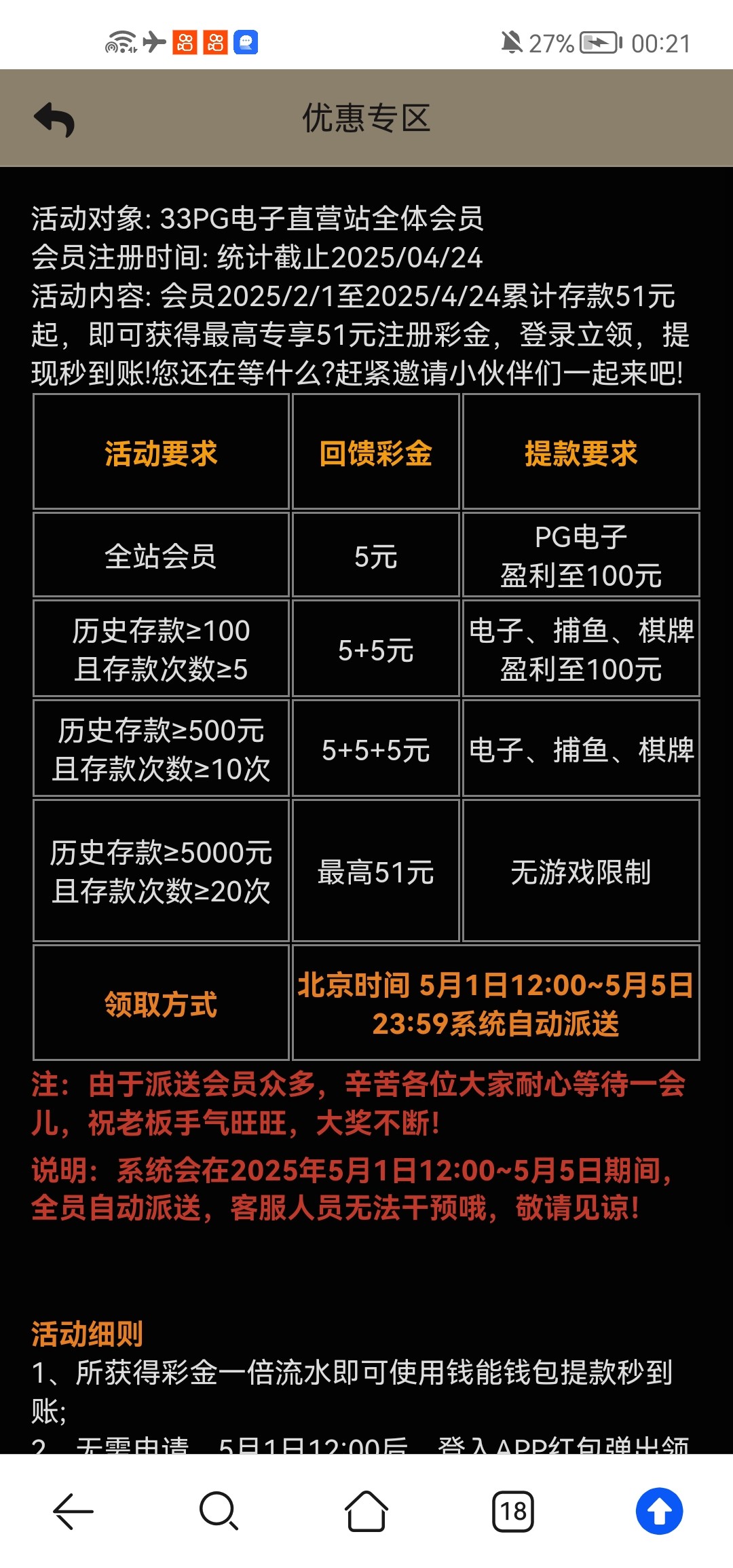 历史没充值过的会员派送5彩金,其他具体金额看图 网址33pg.com