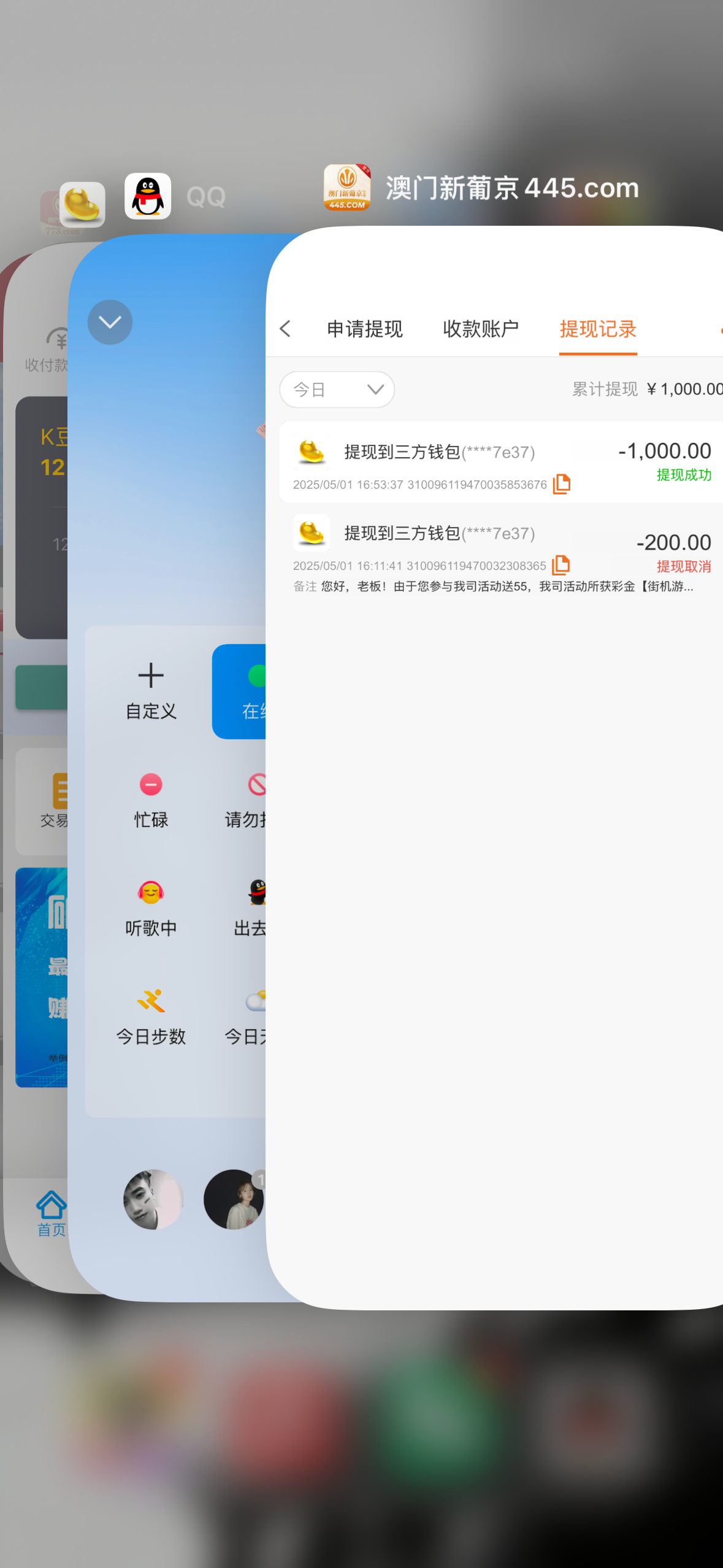 上去看了下没号 打以小搏大以为够流水就能提。提200退回了又上了1k