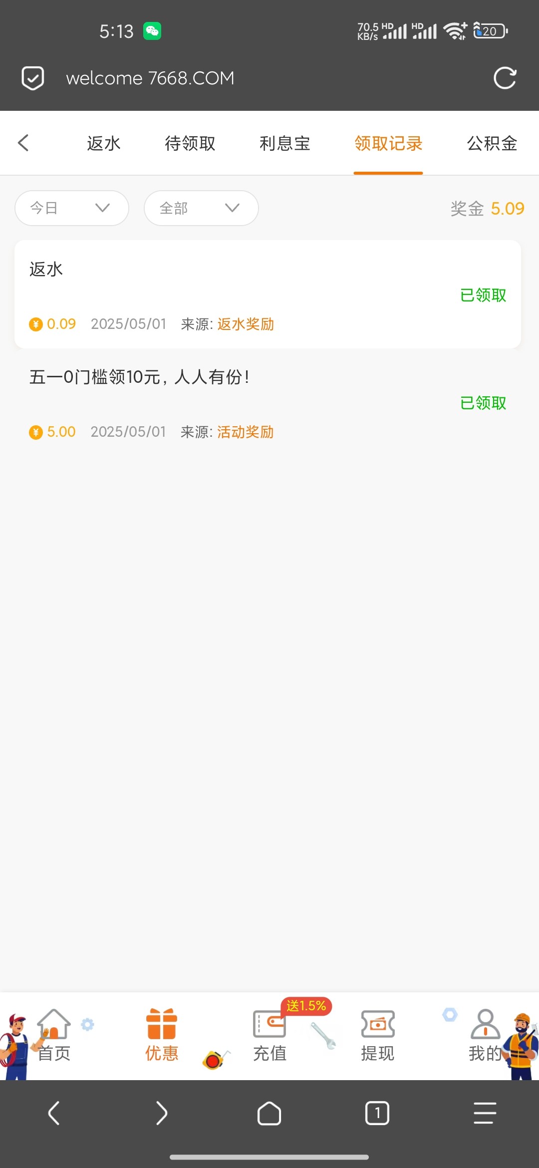 回馈五块也是吃上了