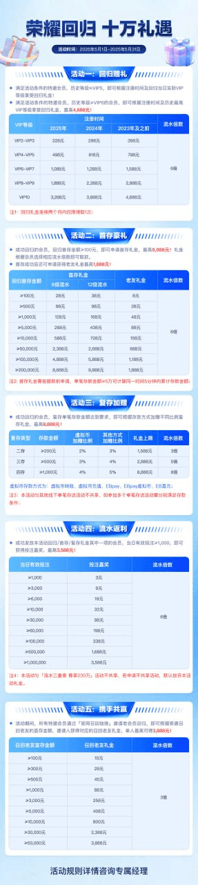 v2以上的都不同程度提高了一点回归彩金,历史v6以上更舒服。不要问我图为什么这么糊,因为专属经理发不出高清图来,凑合着看能看清楚