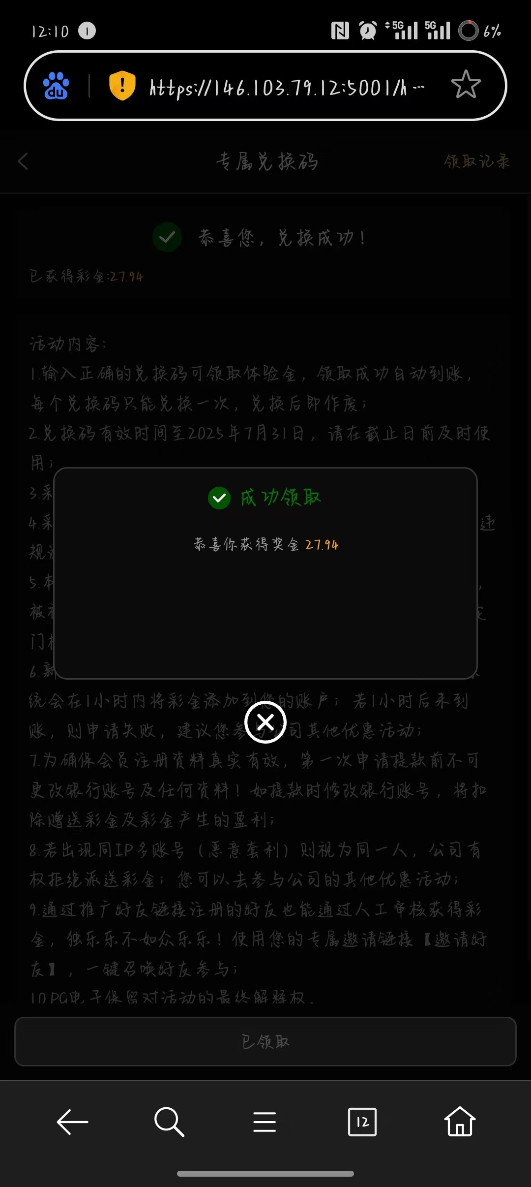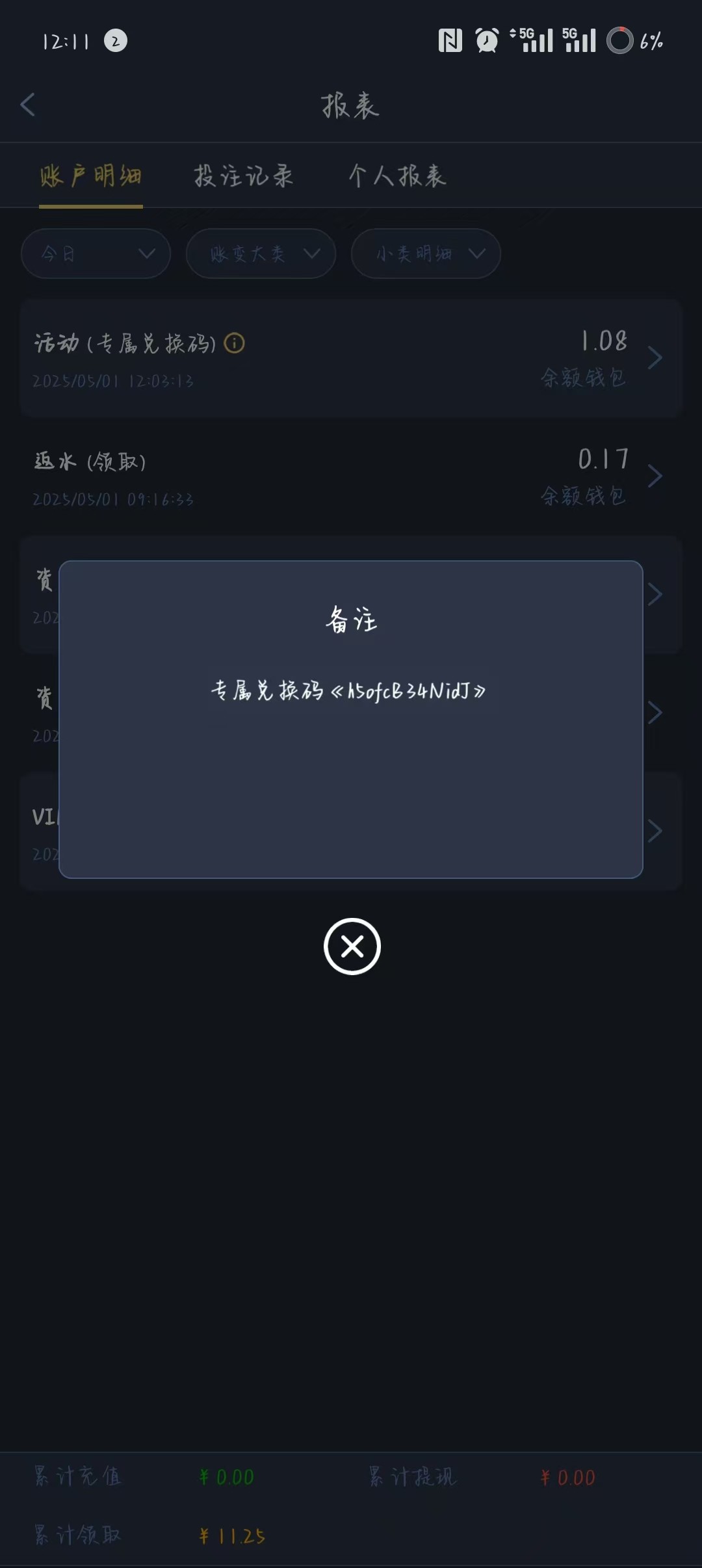 老哥们,在1577有号的可以上号去看看,里面有个专属兑换码,可以在667平台领取27-677彩金,屌大的老哥去看看,领取了可以在个人报表里面查看兑换码,亲测领取到账,没有的老哥等一两天,都会有的