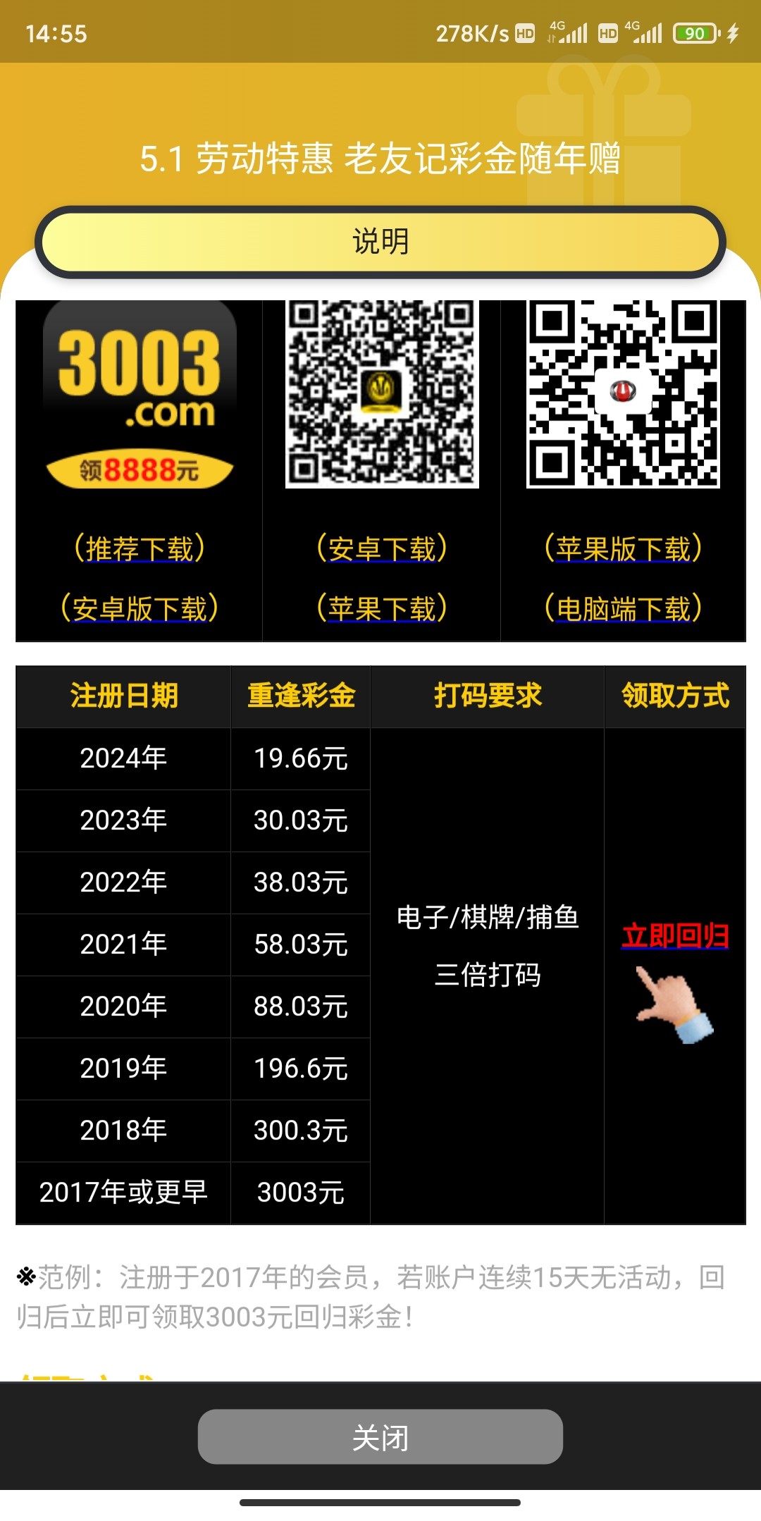 3003老用户回馈注册的越久彩金越多我领了30官方网址3003.com 1966.com找客服直接发你账号领取我的两分钟就到了
