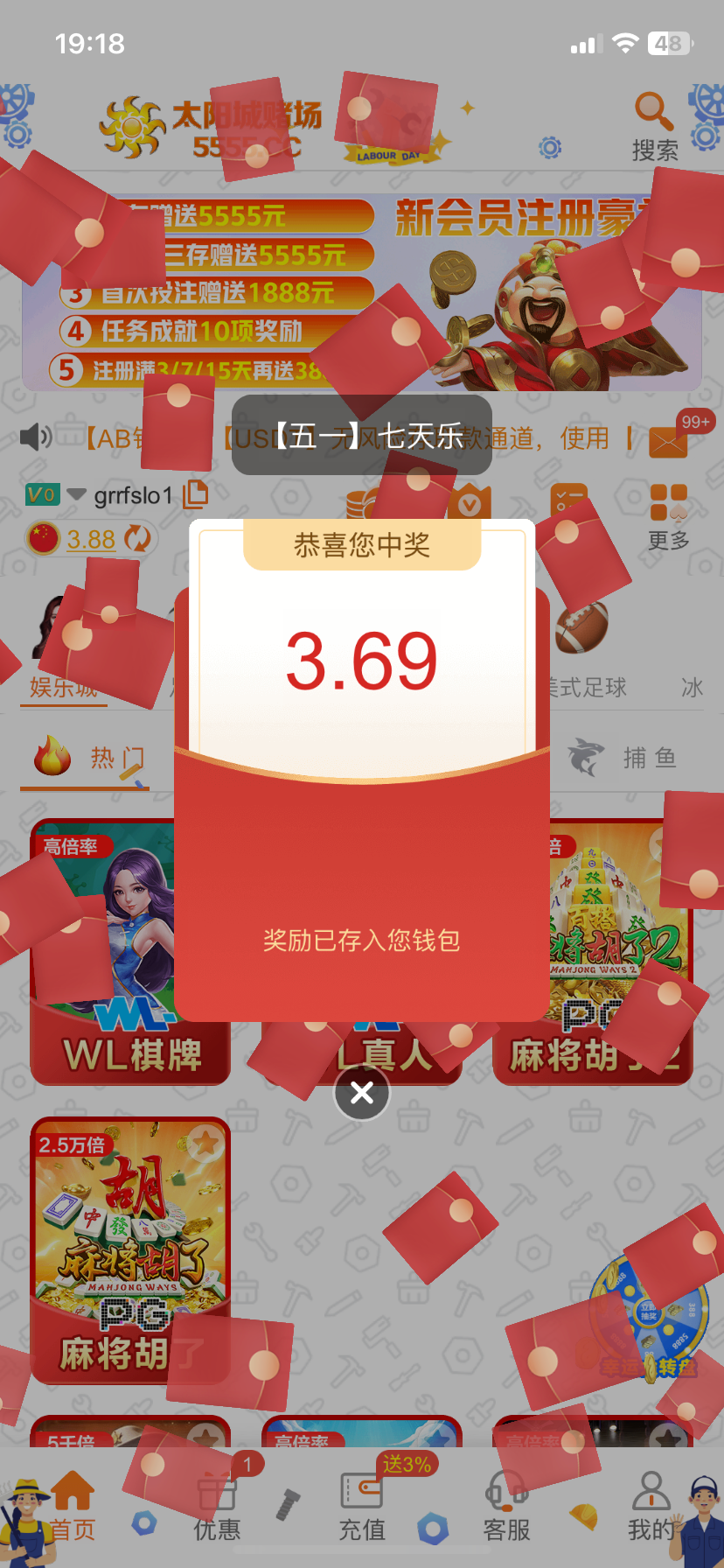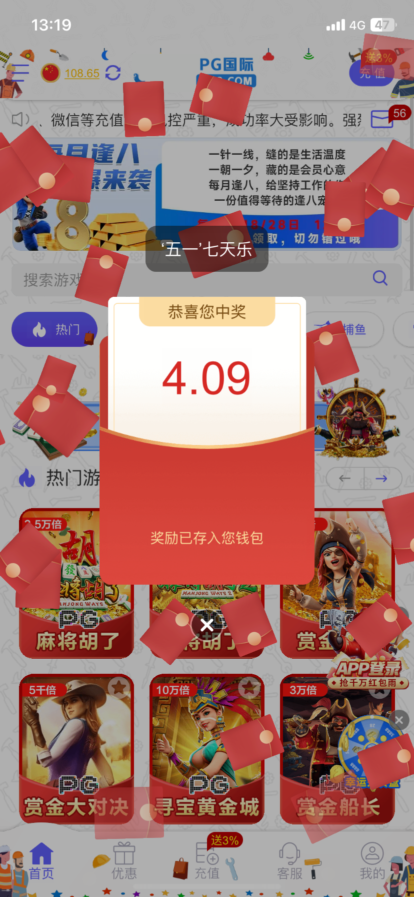 008pg国际,太阳城赌场,五一活动一天能领好几次好吧,应该要历史充值才有,我有一个月没充值了