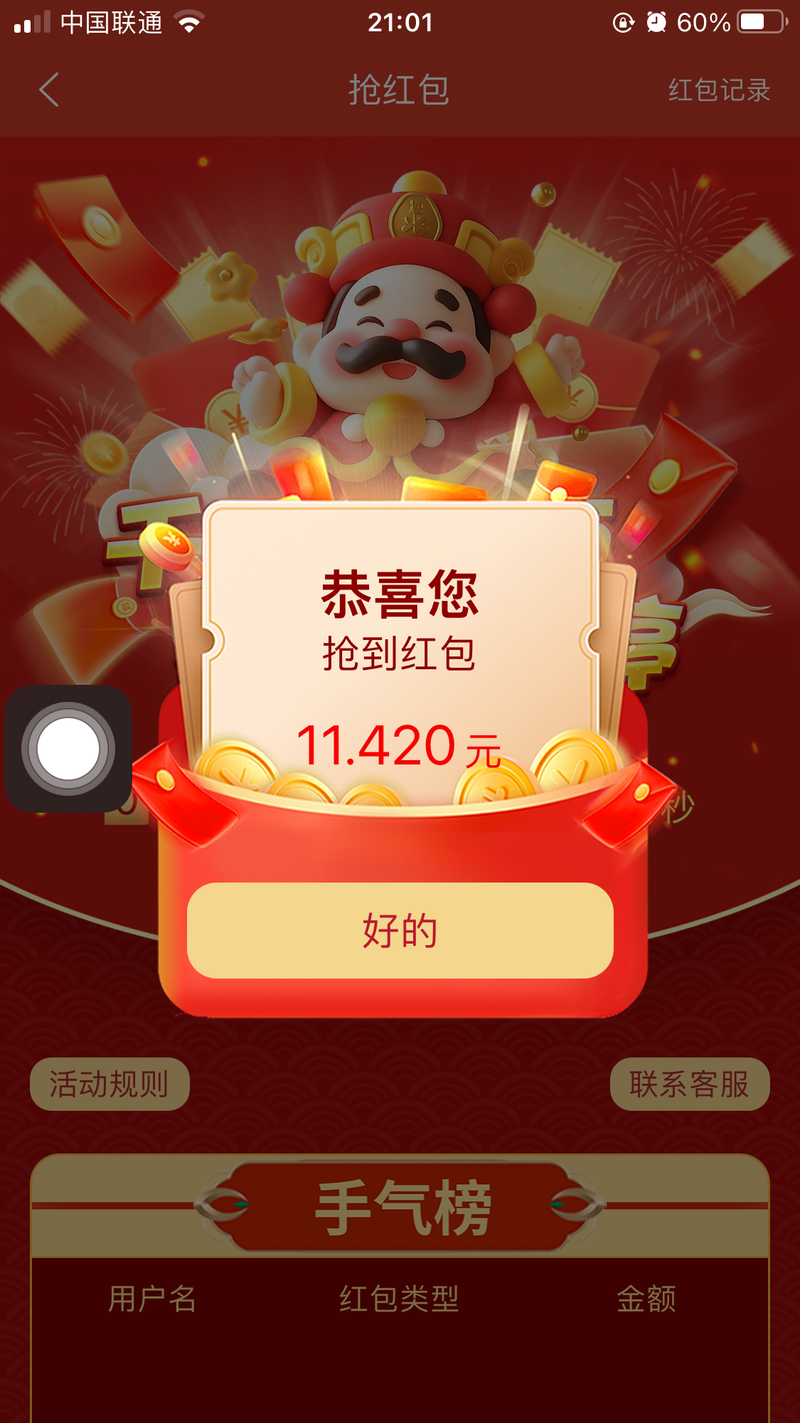 今天还算大的了,明天估计充个十块钱,也就抢个1块
