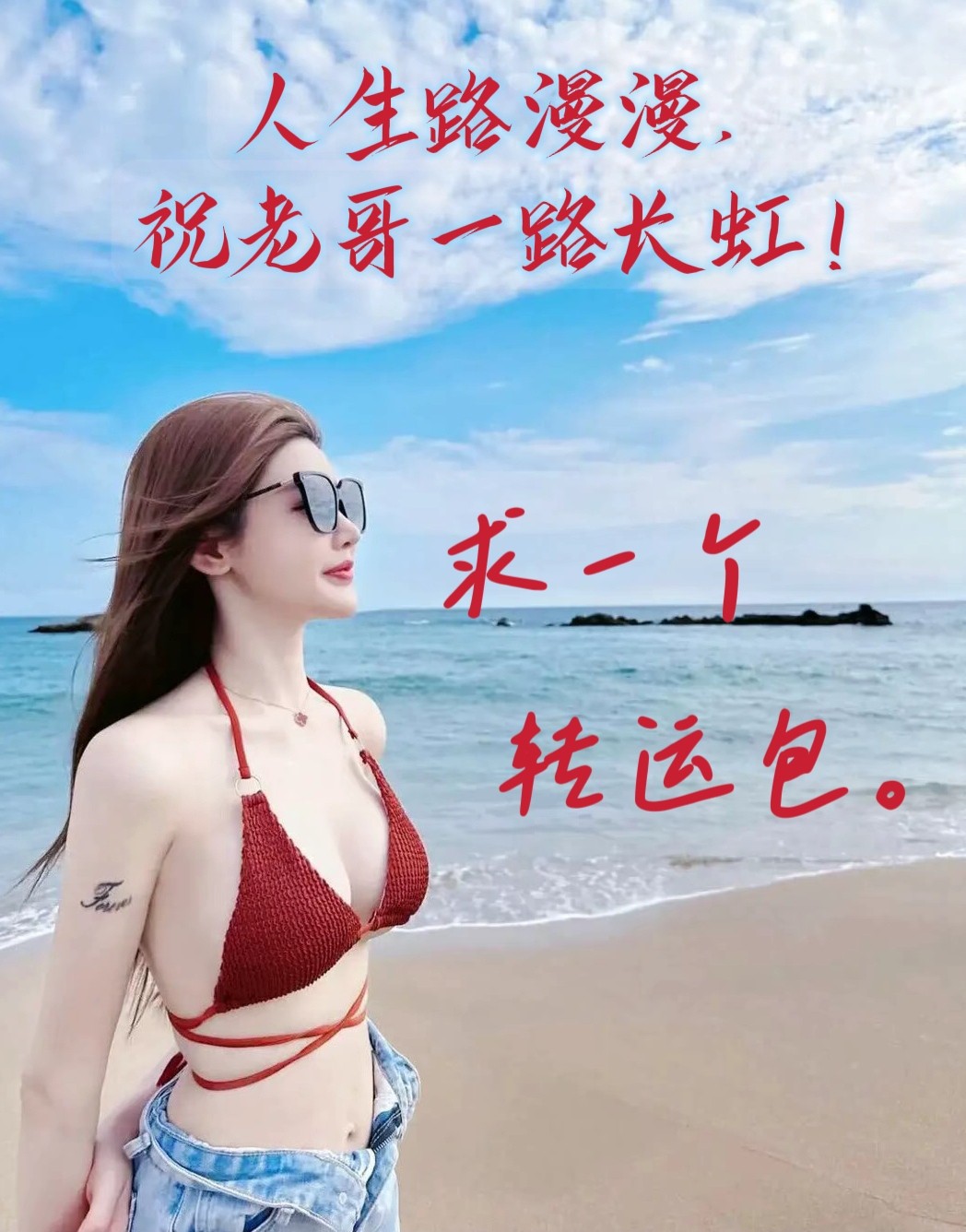 申请,祝老哥!吃不愁穿不愁,不住平方住高楼,天天潇洒,夜夜温柔,买卖如同长江水,生活如同井上花,大财小财天天进,一顺百顺发发发!