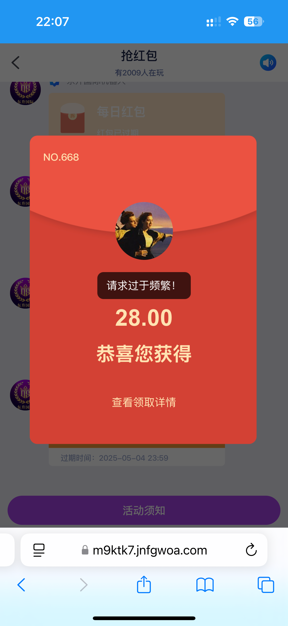 进房间了,点击抢红包显示请求过于频繁,抢不了一点。
