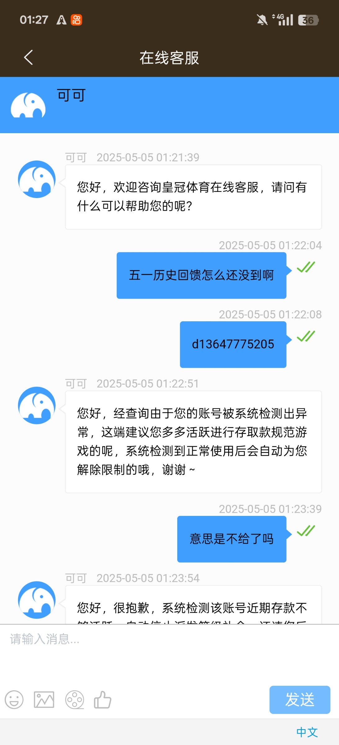 227直接不给了,上次退款了之后解封了,一个月存一万多都是不活跃了