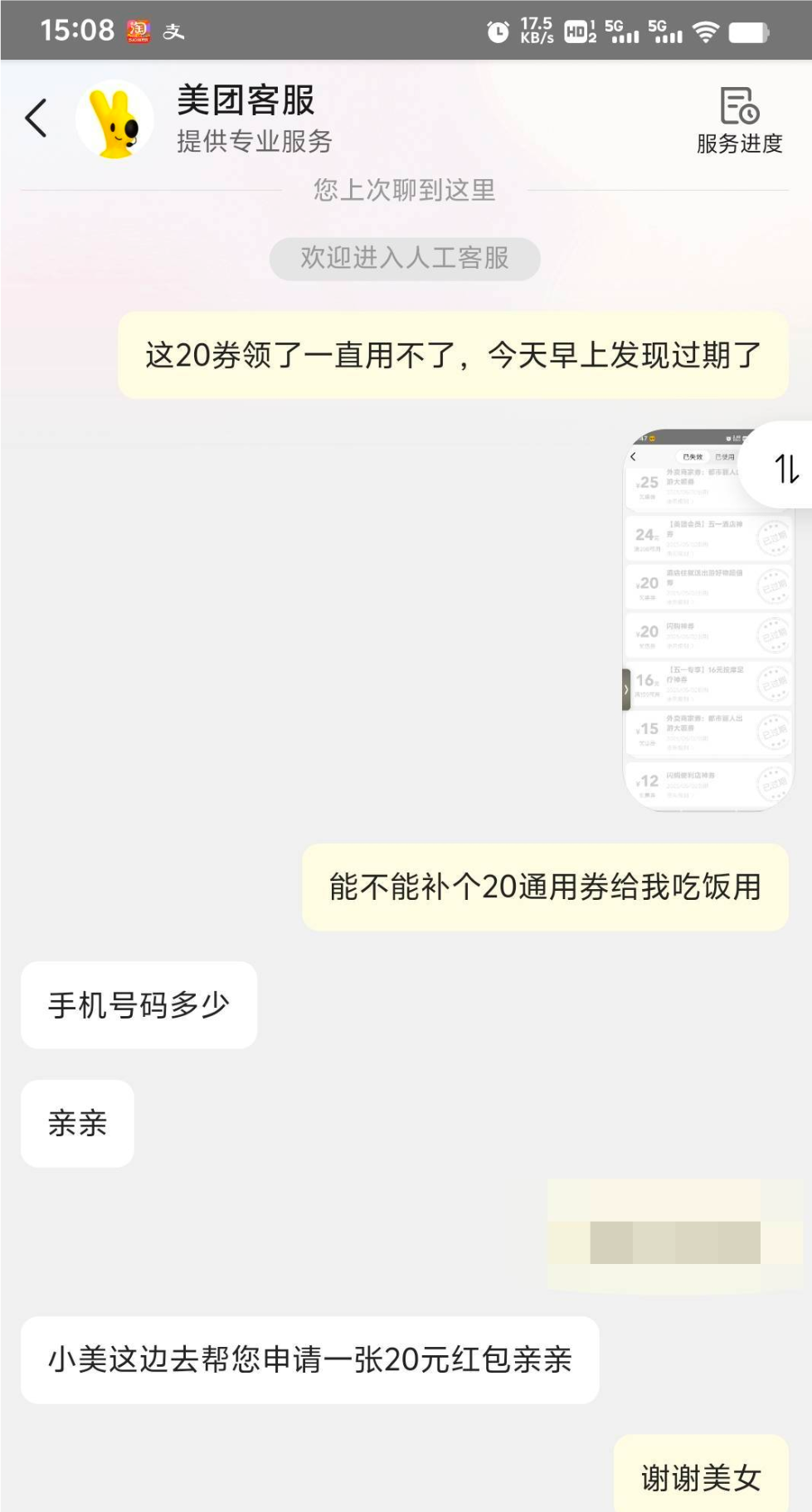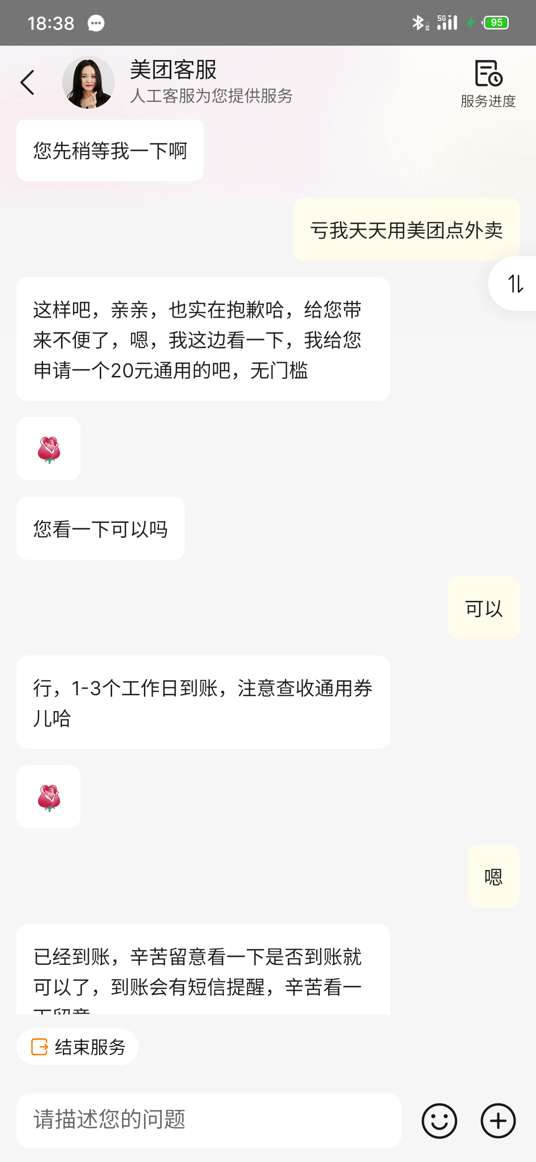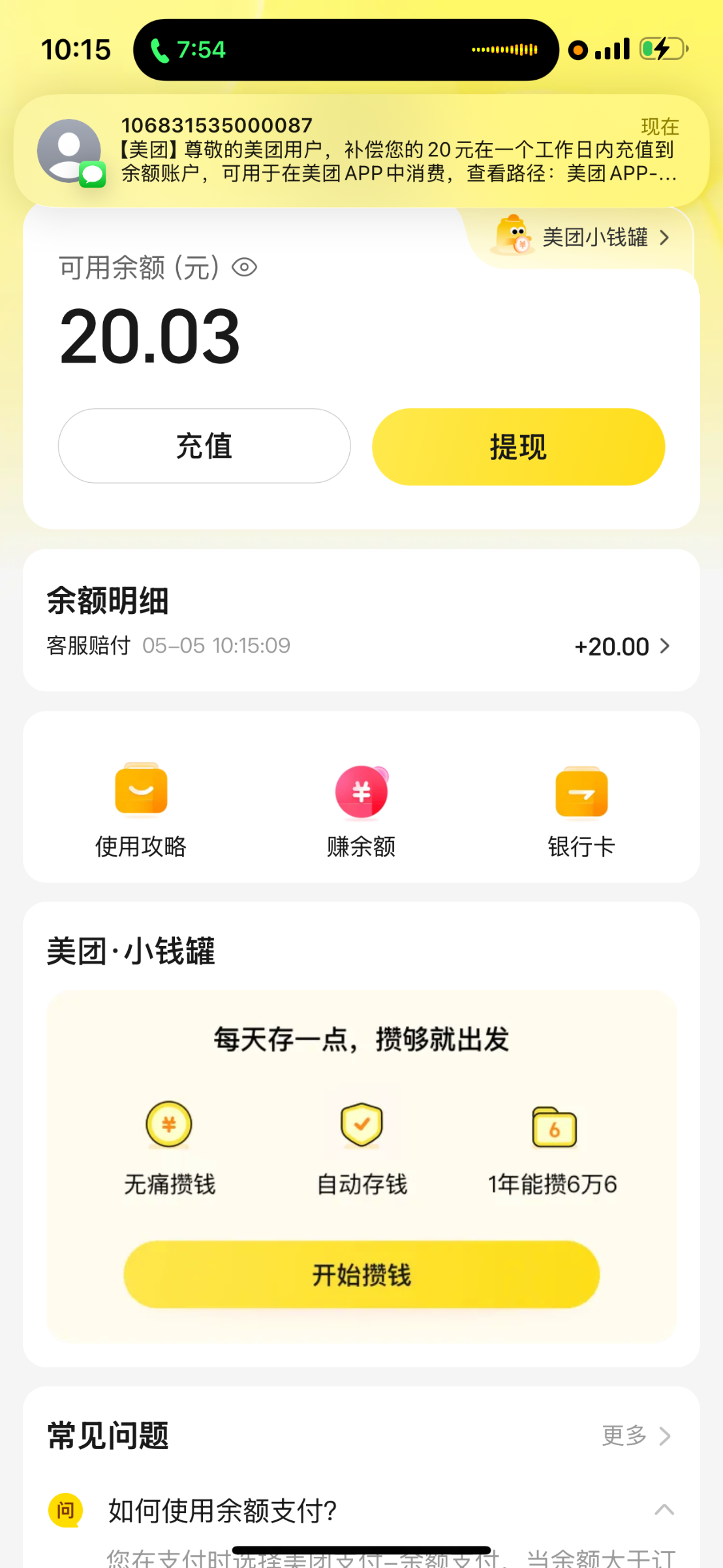 在线客服不给我又来了个电话给我送了20块钱直接体现去年在美团点外卖花了3/4w