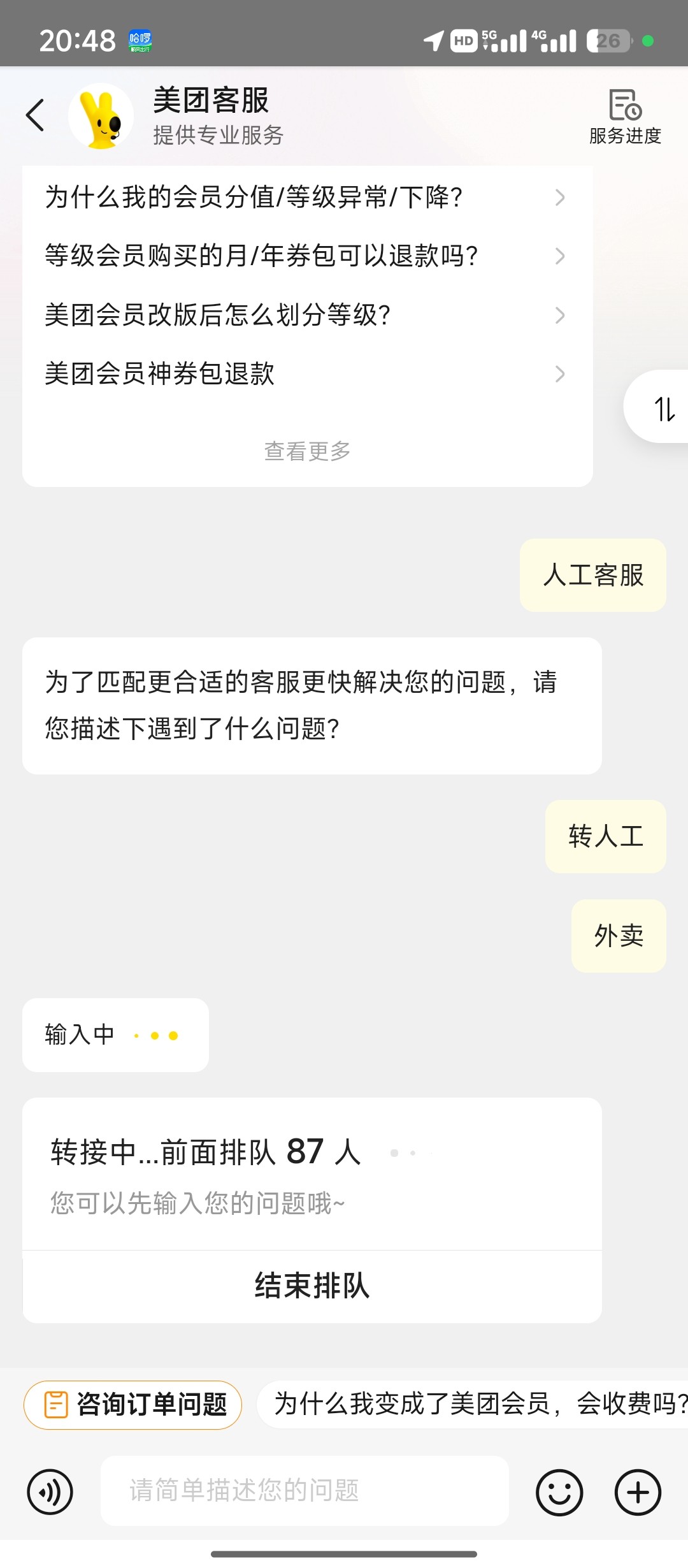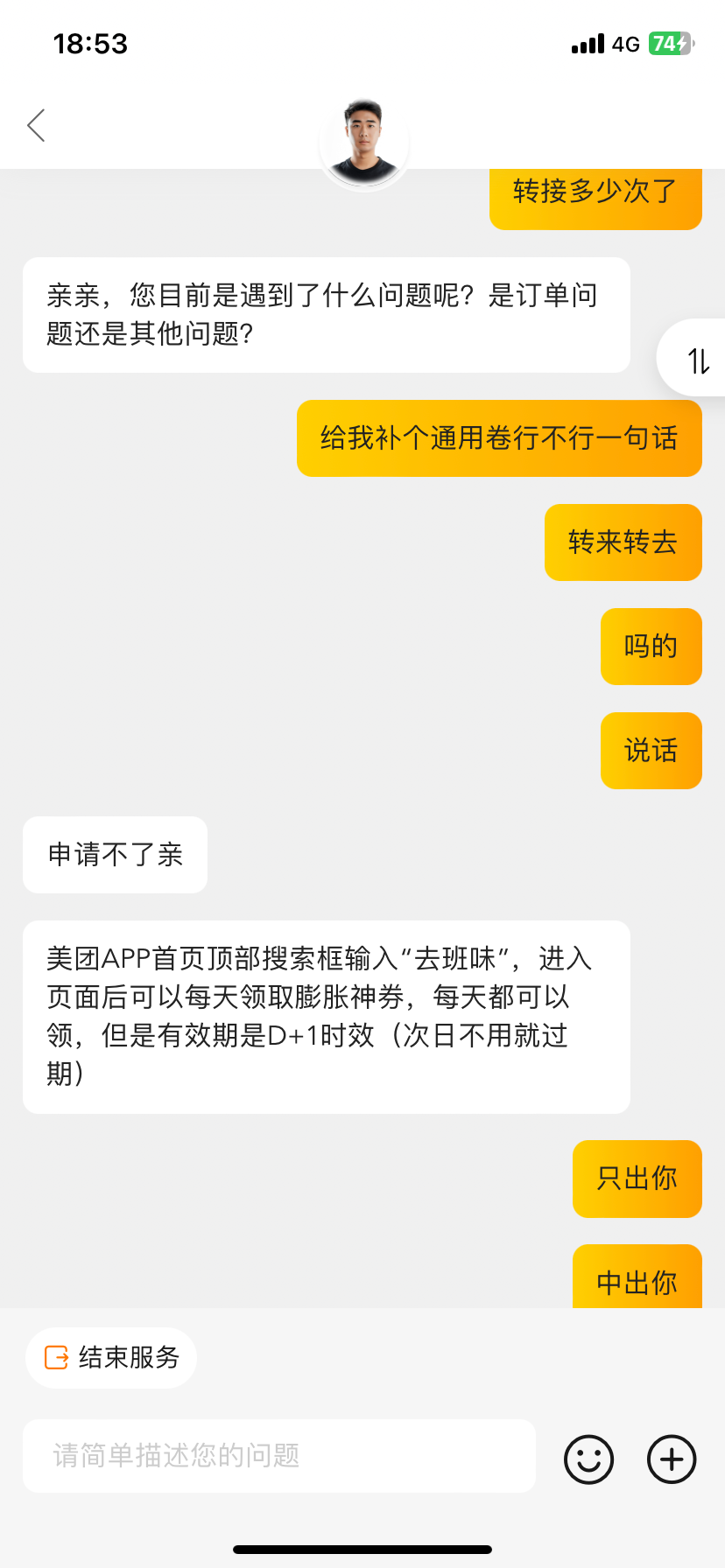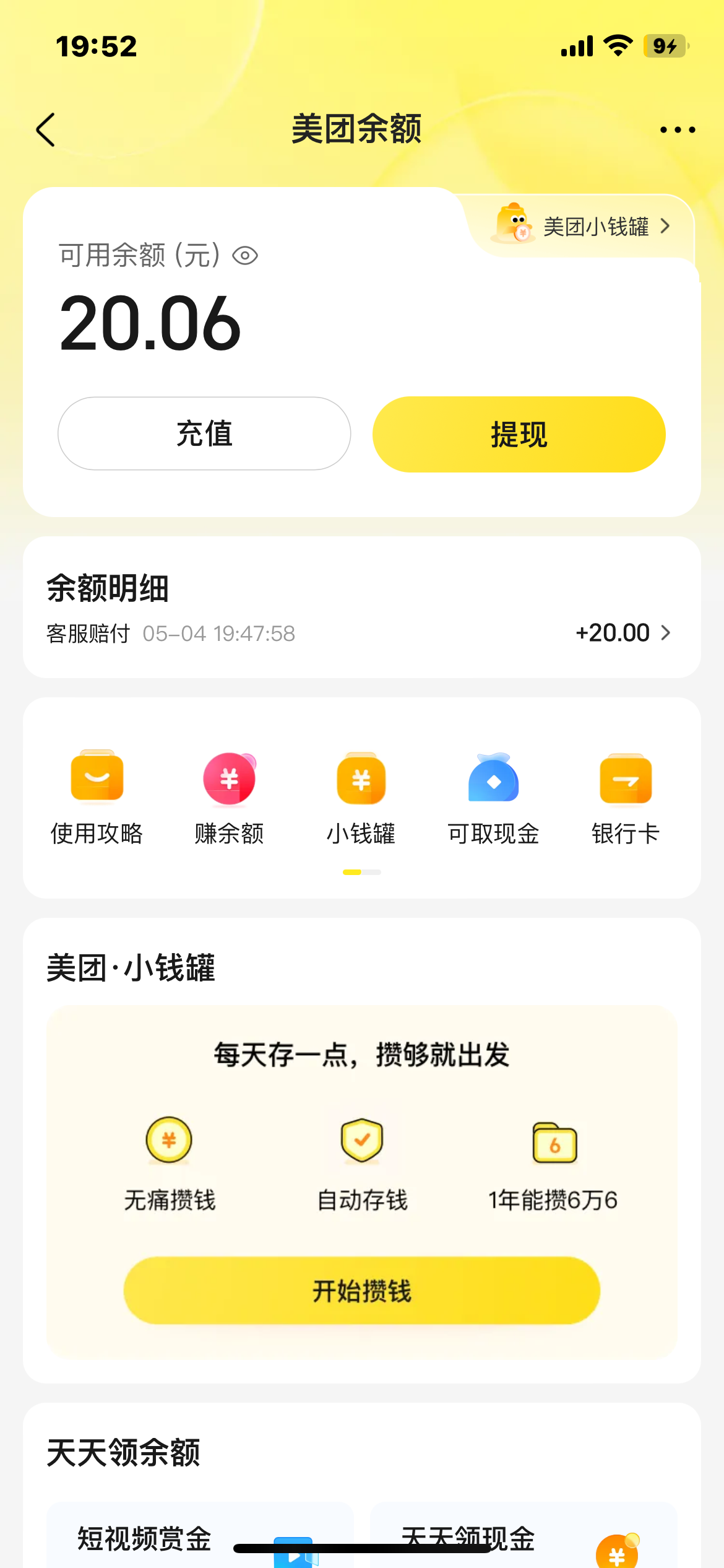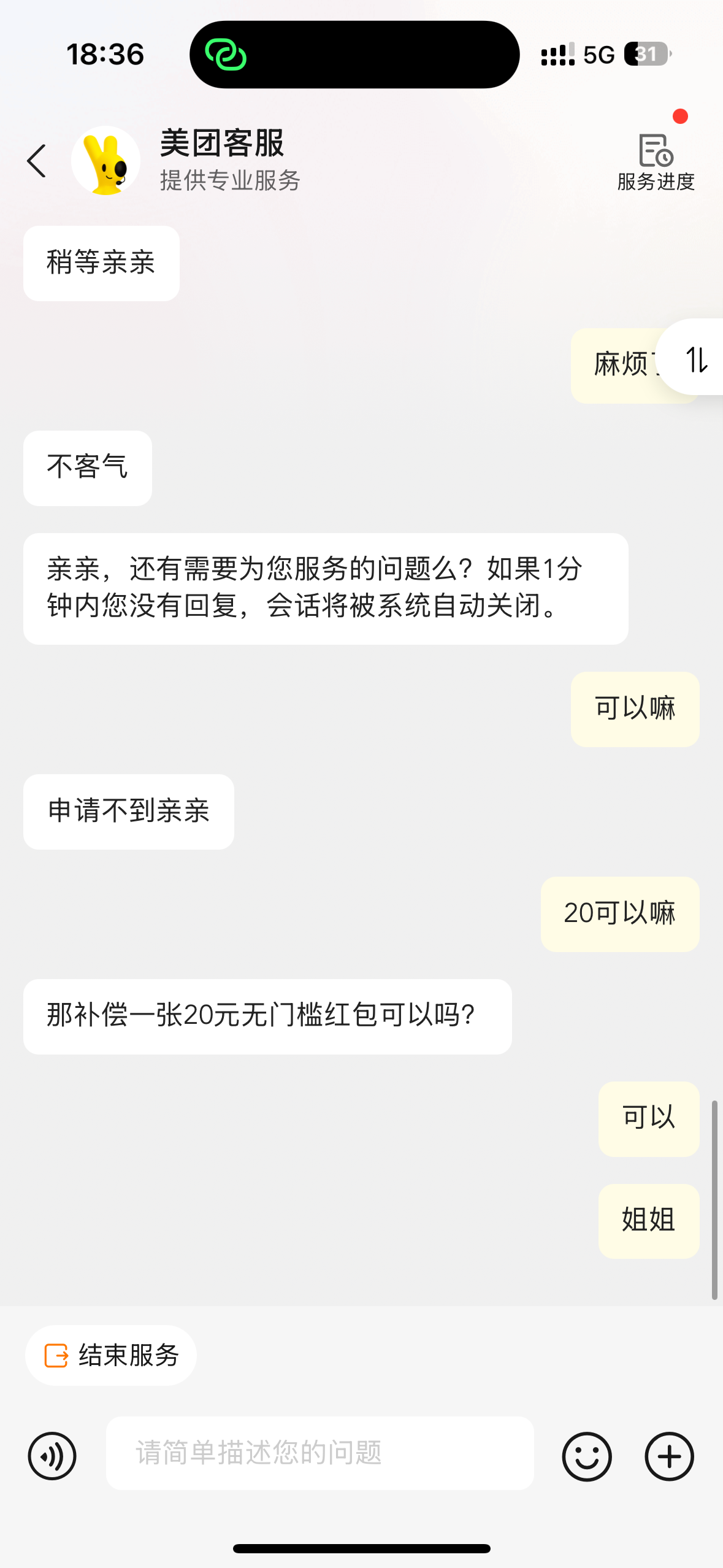 在线客服不给我又来了个电话给我送了20块钱直接体现去年在美团点外卖花了3/4w