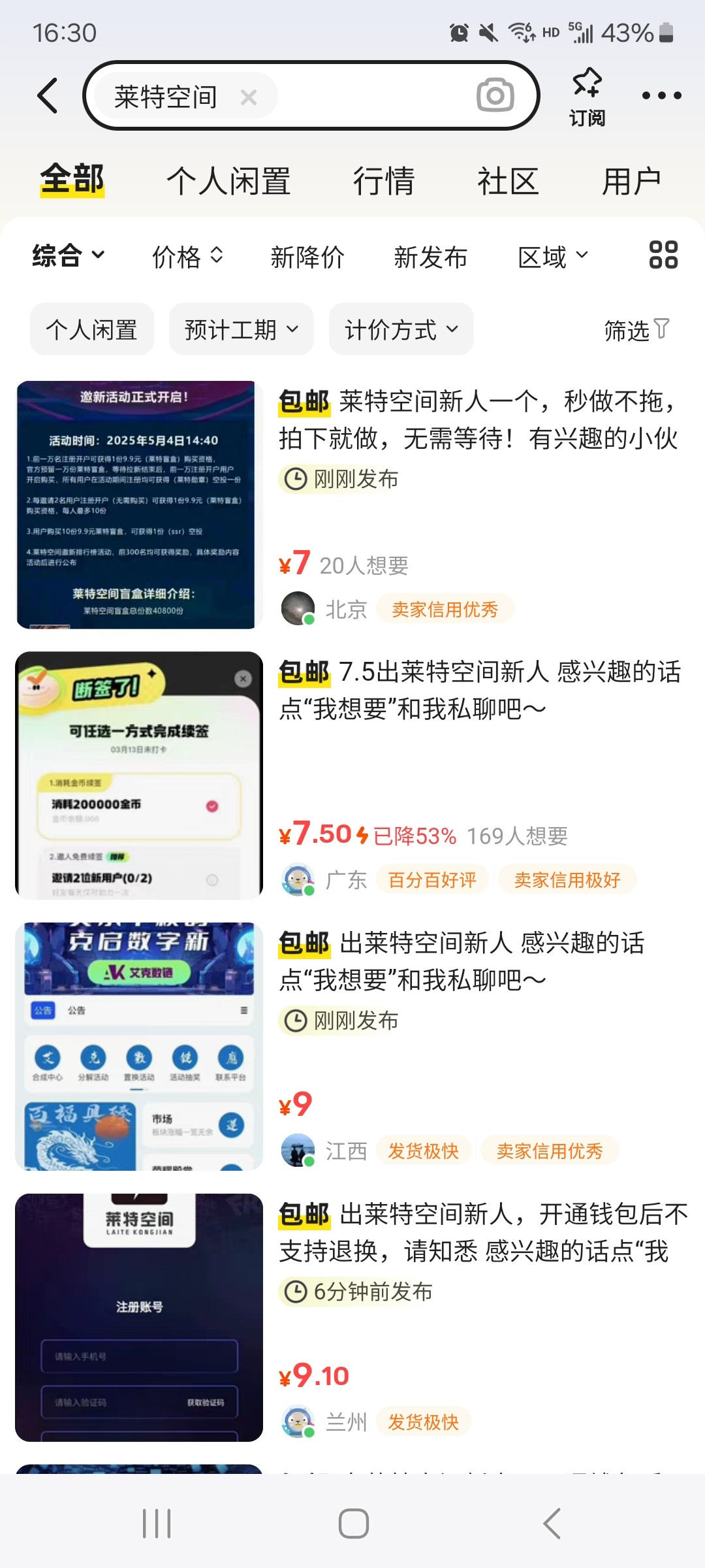 咸鱼挂单内容:出莱特空间新用户,实名开钱包。