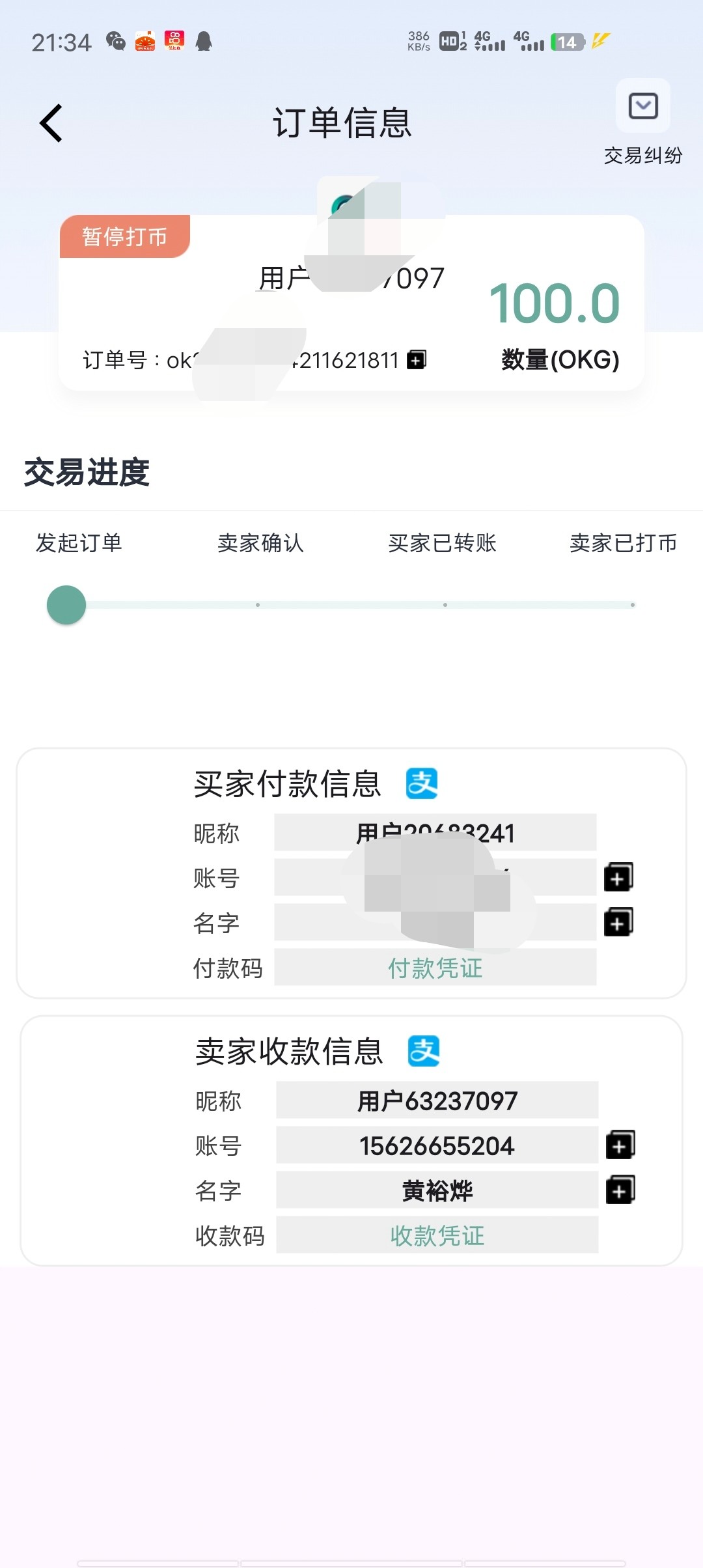 OKpay钱付过去了,傻逼卖家不打币,现在暂停打币了是什么情况老哥们