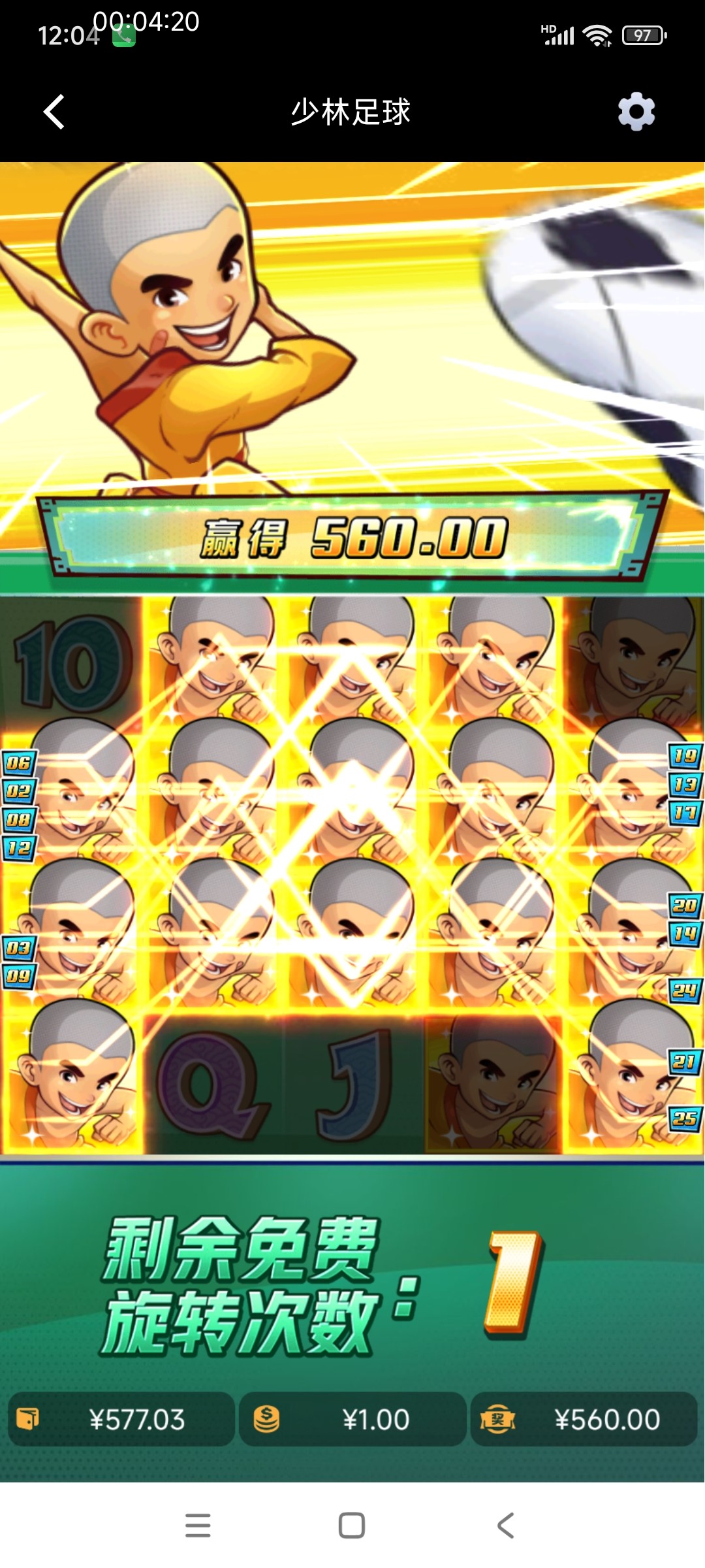 全屏1000倍你这刚好差4个5连一个5连50倍