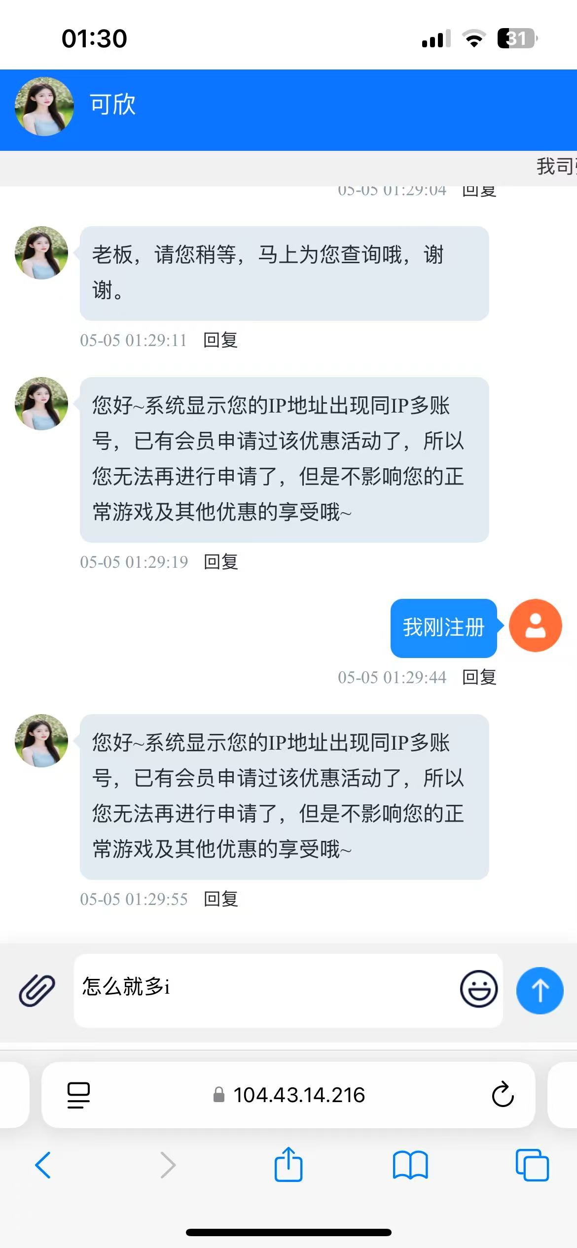 傻逼台就算了把,昨天我随便变了个账号:biaozirinima,发给客服,秒回多IP多账号,我说你特码倒是先查一下账号在逼逼啊,你也不看看这个账号存在不,客服又恢复,请稍等,马上查询,接着又说,该账号不存在,请提供正确的账号,哈哈