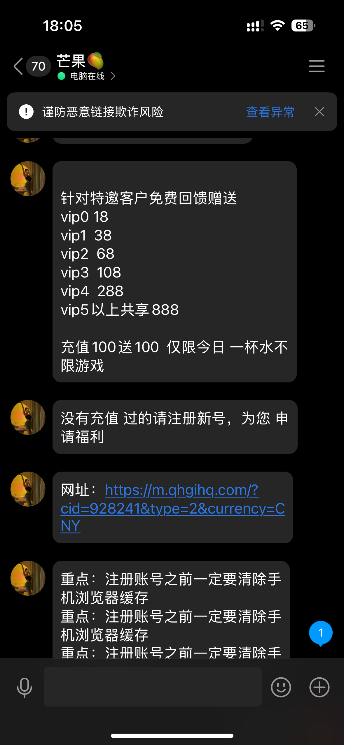 一个傻子话务员打电话给我加qq说送彩金,一下发这个一下发那个的,最后没送,我直接去官方那边投诉中出然后叫客服给我补尝了彩金18