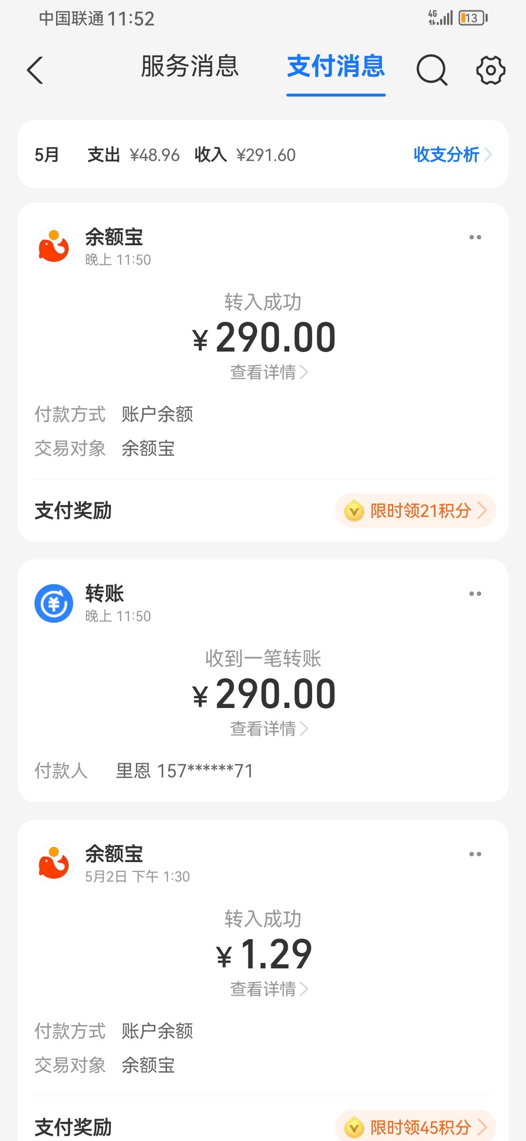 提支付宝到账了