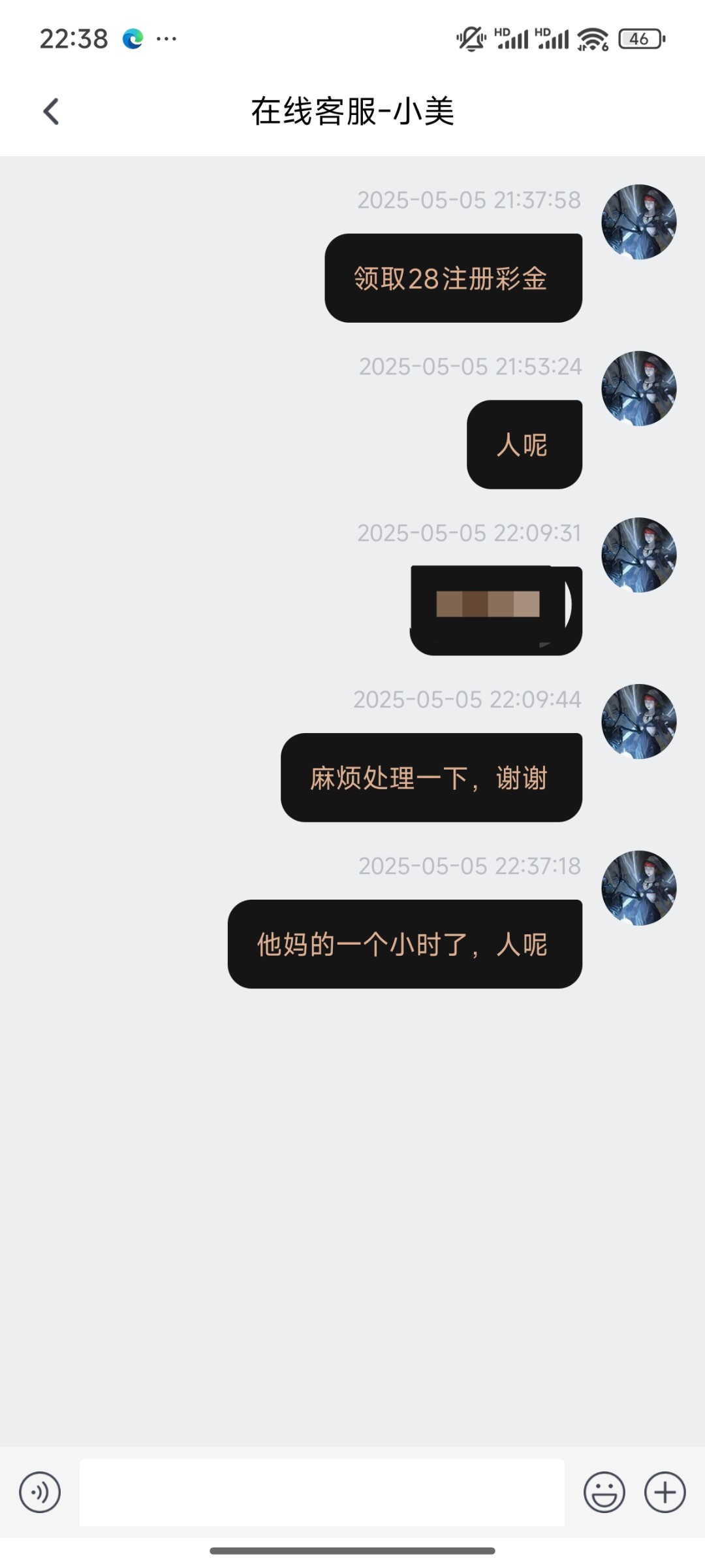 黑笔台子,客服不回话回话直接无视人死妈了