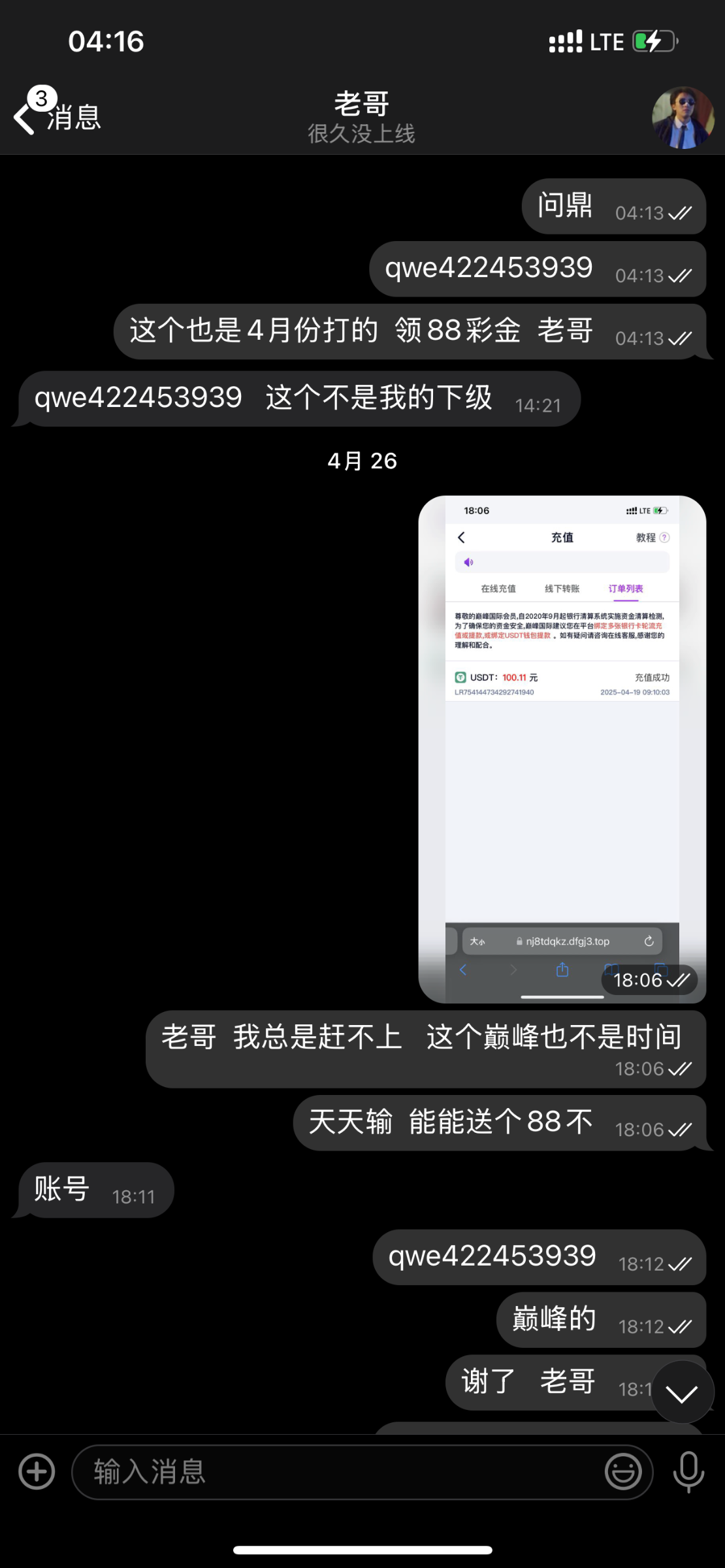 我是个新手,好几个论坛瞎几把跑,这注册下,那注册下,等自己挂壁的想申请彩金,找不到上级。其实我那号都不是老哥线下的,老哥二话没说,照常送,够意思。