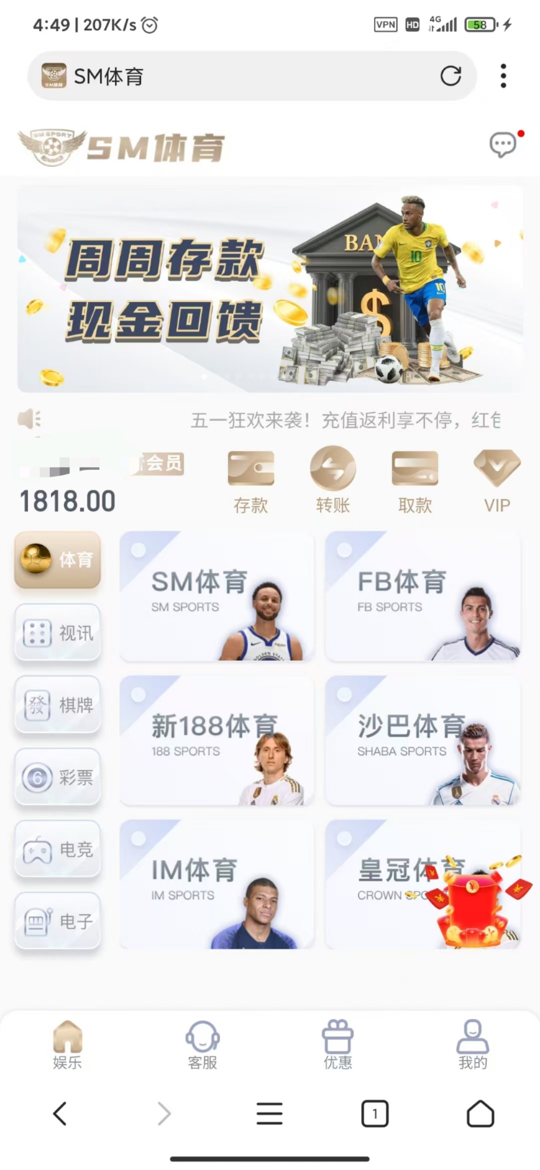 老哥数字模拟器P1800到账但是这个SM体育网站很卡我刚刚挂了vpn准备玩发现已经进不去冻结了没有这个命哎气死了白高兴了...