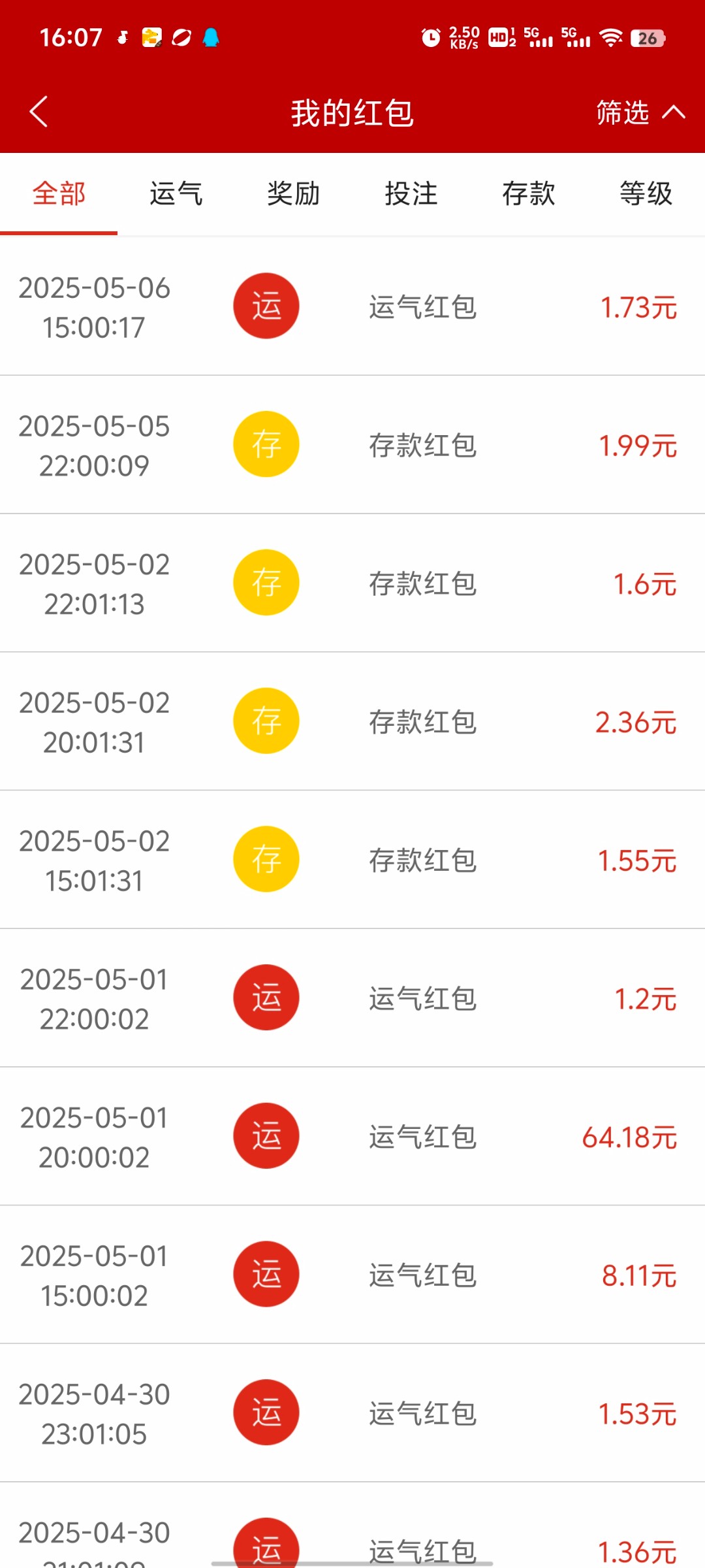 从这次五一活动出来就能看出来精彩网系列的台子越来越扣了,红包也是一块钱。从昨年下半年开始精彩网系列的的历史总存就改年度总存。狗庄越来越给不起了。以后抢红包不用存,现在就算存了也给你发个1块钱的红包。精彩网系列再也不是老哥们过年过节的低保。还是重新找个好的台子领低保。
