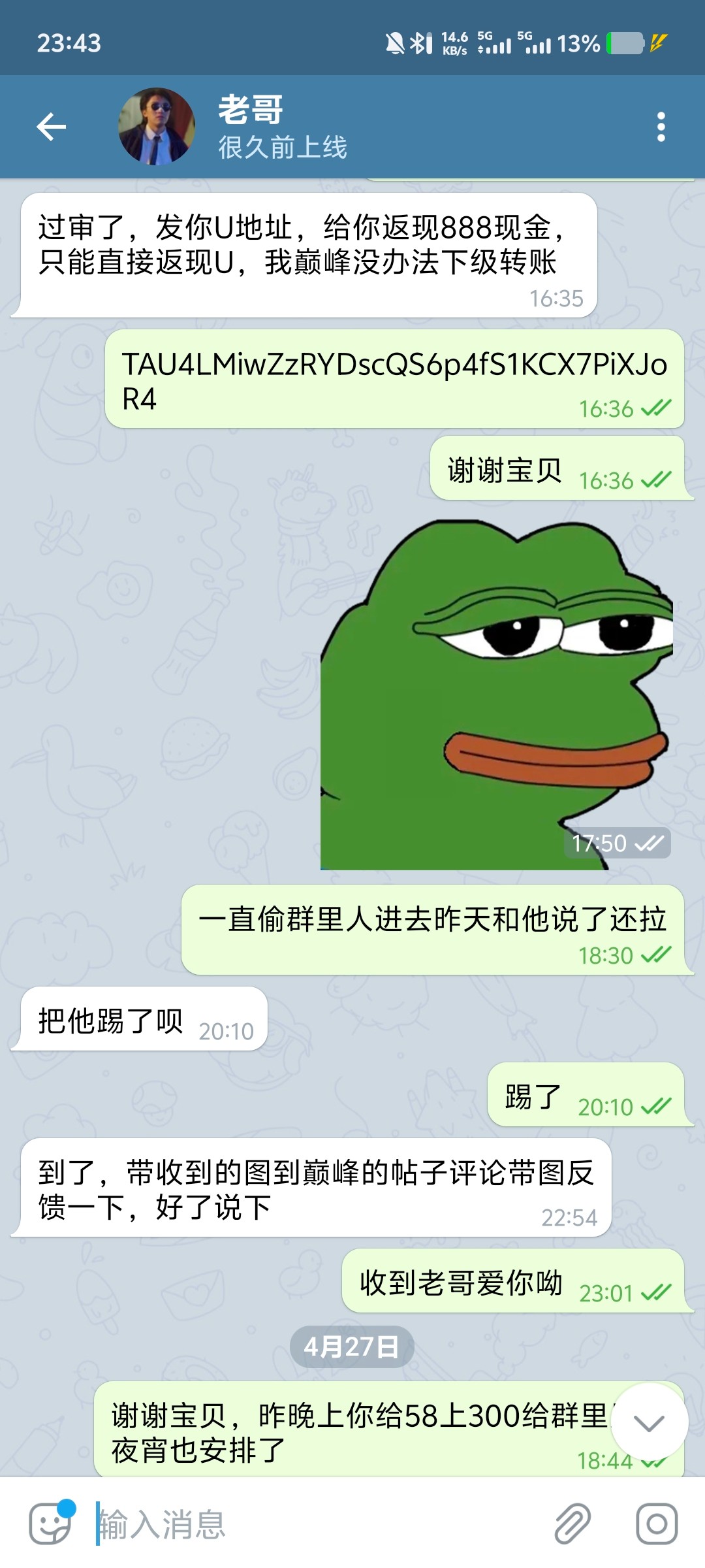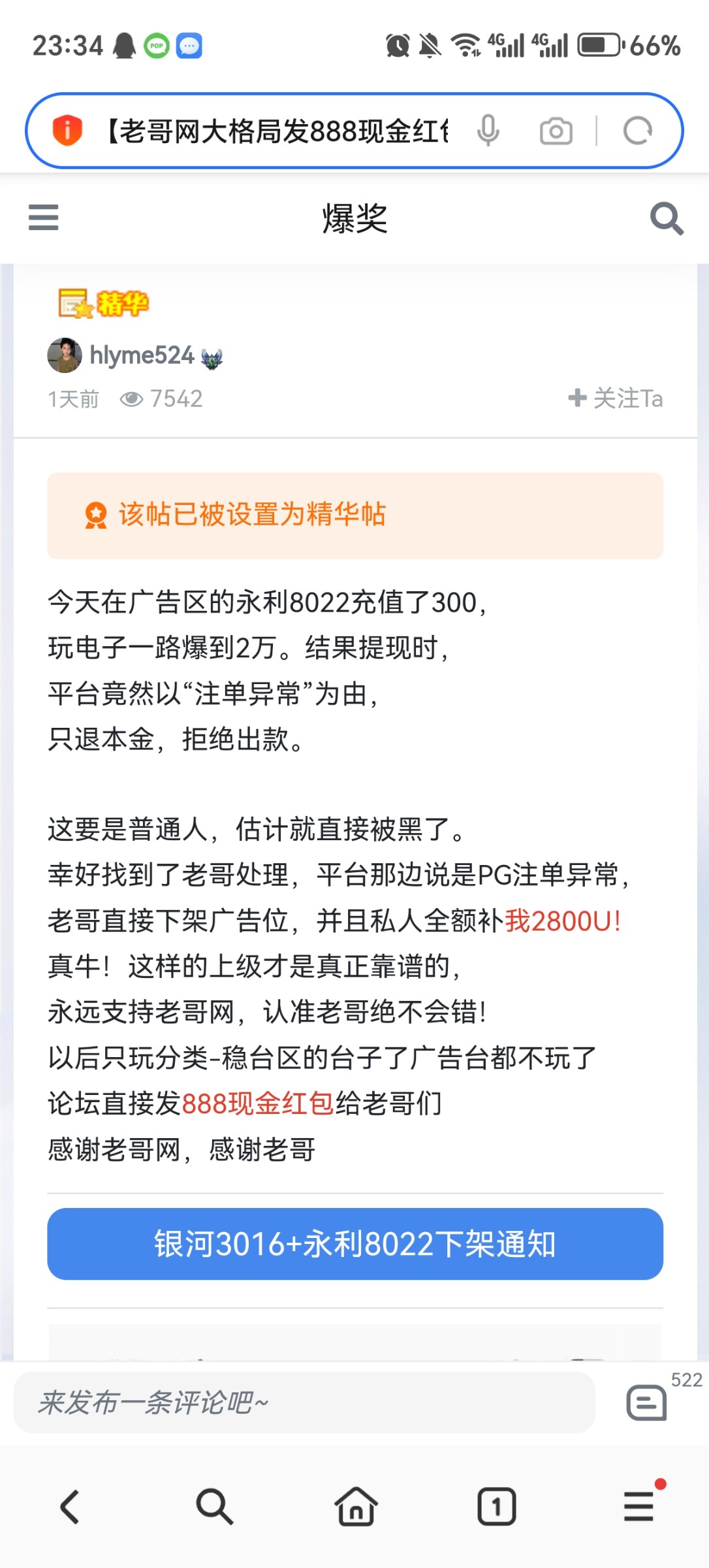 我是无条件相信老哥的,来那么久老哥什么样的人我也有点了解,每天晚上发福利都几百,会要这点吗,别的不说就拿广告区8022那个老哥被平台黑2w,老哥全额赔了,别的地方只会退本金我无条件相信老哥,老哥不缺这点钱,公道自在人心,真理永久长存