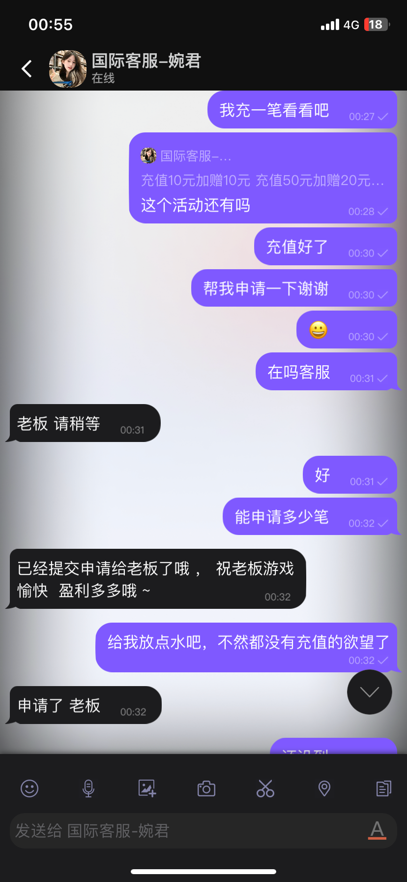 008pg国际51活动,添加女神充10块可以申请76有号去看看不一定都有,我有一个月没充值过了送的彩金一倍流水出款,这个台最低可以提10块稳赚不亏 网址008.com