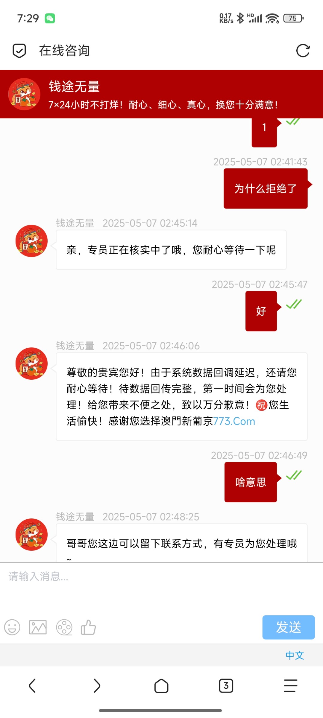 充值快100万的老用户告诉你 这台子我没被黑过 但最多一次就单笔提5万 然后接着提三万这样子 陆陆续续卡款 恶心你 直到杀光你的余额 就给你出 去年5月份红过一次10万 全部送回去 倒贴进去五六万 就不敢大额玩了后面 九月份运气来了 连着一周时间每天红几万红过17个 卖出去五六万消费了两三万 支付宝 微信能收钱的全部被限制 钱能钱包里面放了12万没卖出去 十月份的一个早上 半小时不到全部送回去 从那以后就没怎么充值大额玩过了 然后从过年开始 一直陆陆续续到现在 杀回去了两三万 我都是小额玩 几百几千充 只玩DB真人 电子没碰过 说出来不怕你们笑话 我唯一被黑的应该就是他那个VIP晋级活动 30天之内存款30万晋级 但5月份我达标这个死妈平台不给我申请!后面我一直懒得管他 9月份达标去申请还是不给我 我就知道怎么回事了 还有就是我看你们773抢红包每次都好几百 好几十的抢 为什么我一个马上v9的账号每次抢红包一块钱 这难道跟运气有关系吗 我还不相信 连着抢了一个月都是1.6 1.7 1.32 这样子 在两块钱之前徘徊 节假日能抢个十几块 呵呵
