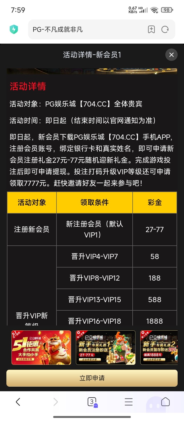 注册送27,没绑卡和手机号上去注册直接送了,没打出来,出款自测,禁止充值。