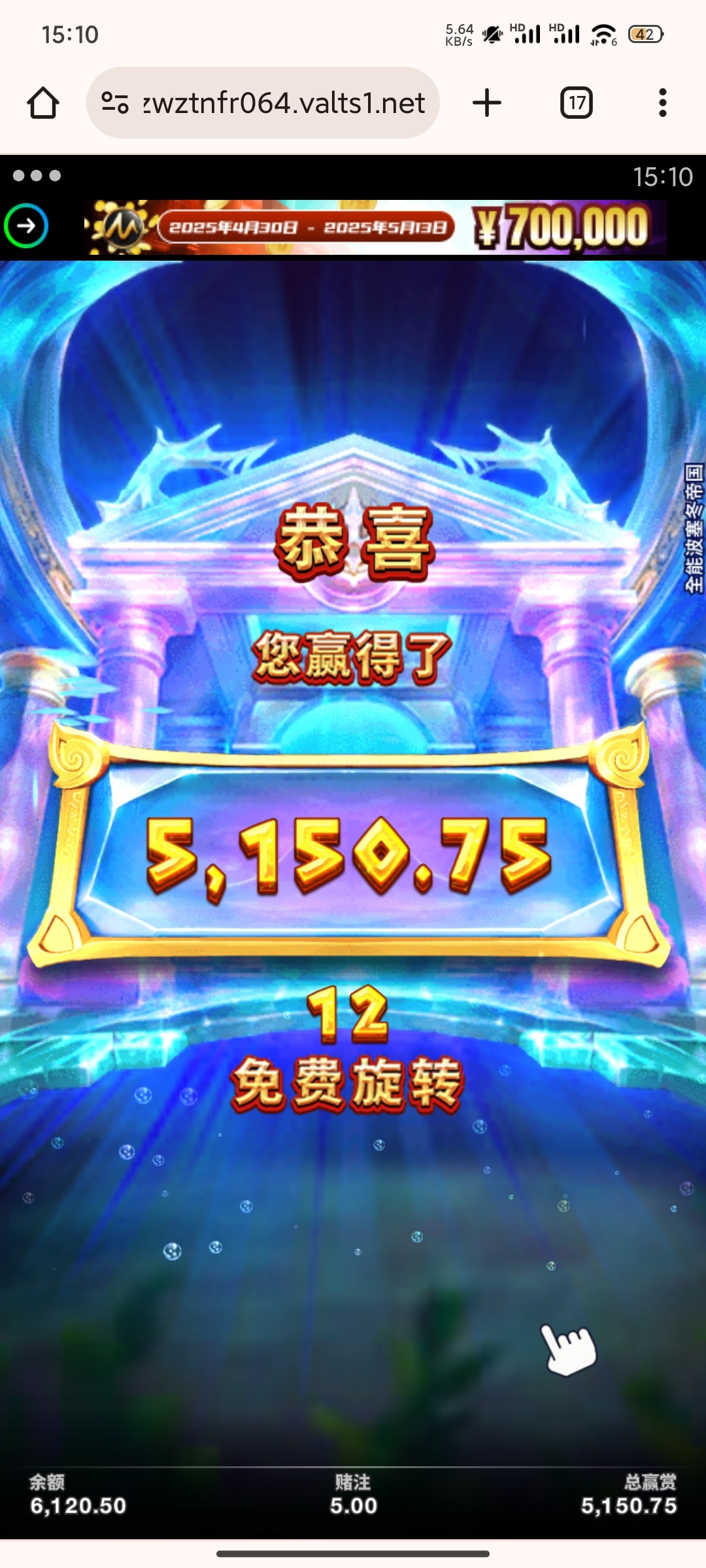 充值1000,5块的底摇MG电子新出的游戏《全能波塞冬》,拉了50手给了免费,进去空转 没想到最后一下掉了一个最高奖池