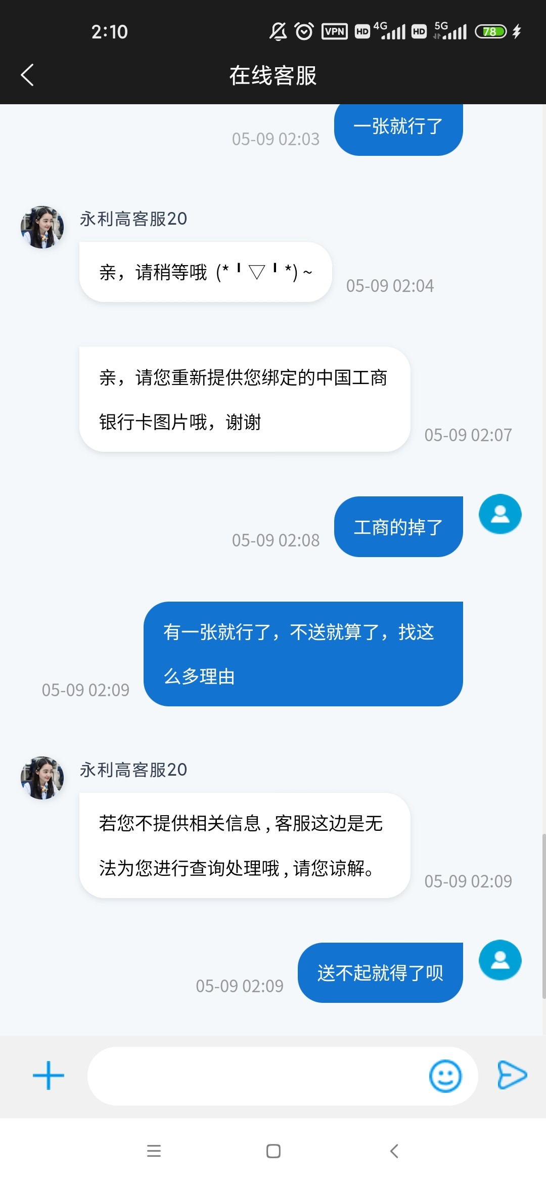 垃圾送不起了,我绑了两张卡非要我提供两张卡的照片。尼玛的煞笔
