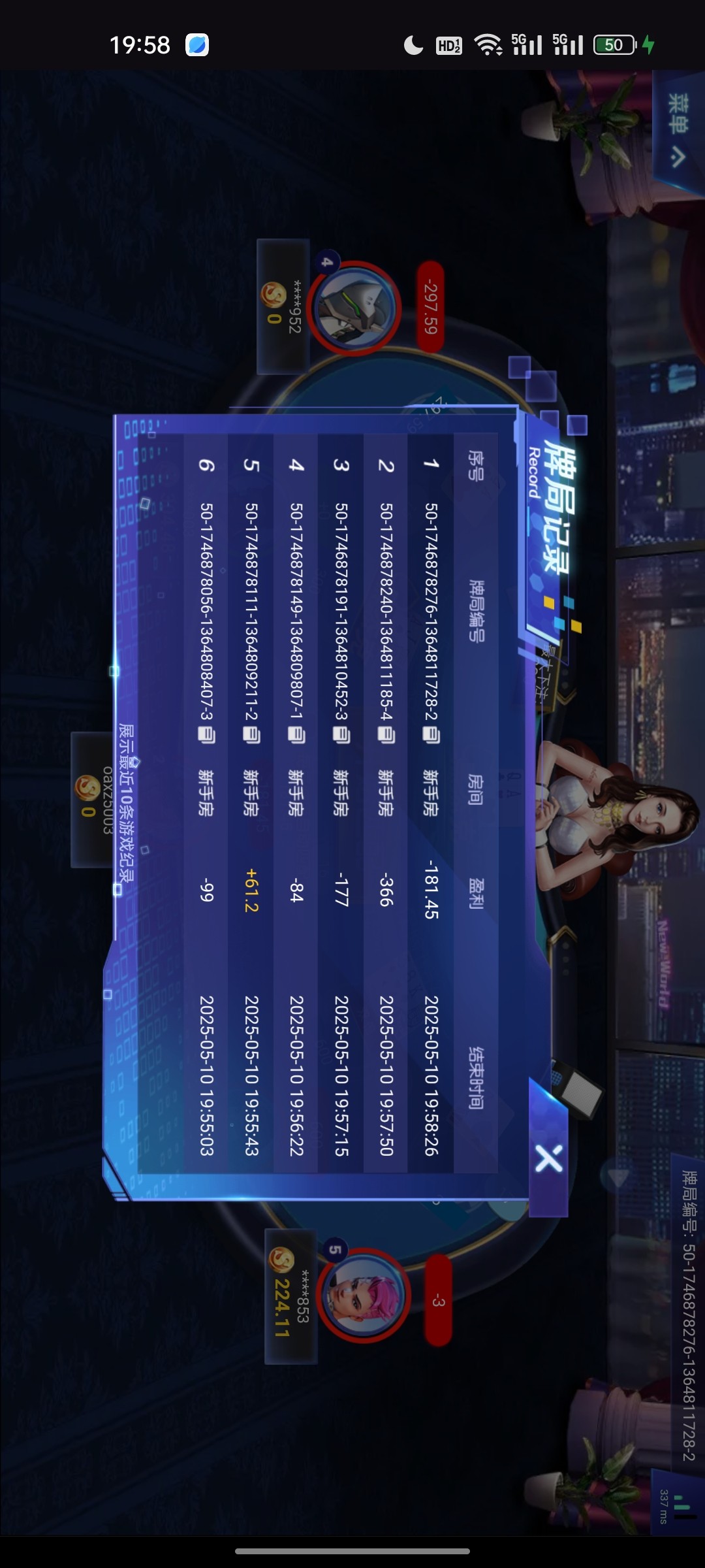 33pg,这次我是真的下定决心删除拉黑这个平台了,以前玩过这个平台,太杀了就卸载了,今年回归,玩21点红了快2000,然后就开始小额上分,那一天充值了100电子上200多,想着再玩一把别的翻倍,首选肯定是21点,但是感觉当时已经红了点这个游戏,怕输就没玩,选择了fg抢庄牛牛,进去中级房,上来梭哈15倍,我开了牛9,庄家牛9把我拿下,然后一发不可收拾,上头了,陆陆续续到今天输了本金3000多,加上盈利的那2000,5000块钱葬送fg抢庄牛牛,一直输,光今天就上了2000分,赢了一把128,后面全是死,5000块钱玩了10几把,赢了一把128,这个平台已经废了,记录不让我查,网页还是APP,可以进游戏,但是查看对局记录就是一片空白,今日最后一把又是牛9碰牛9把我绝杀了,也算首尾呼应,以后不会再玩了